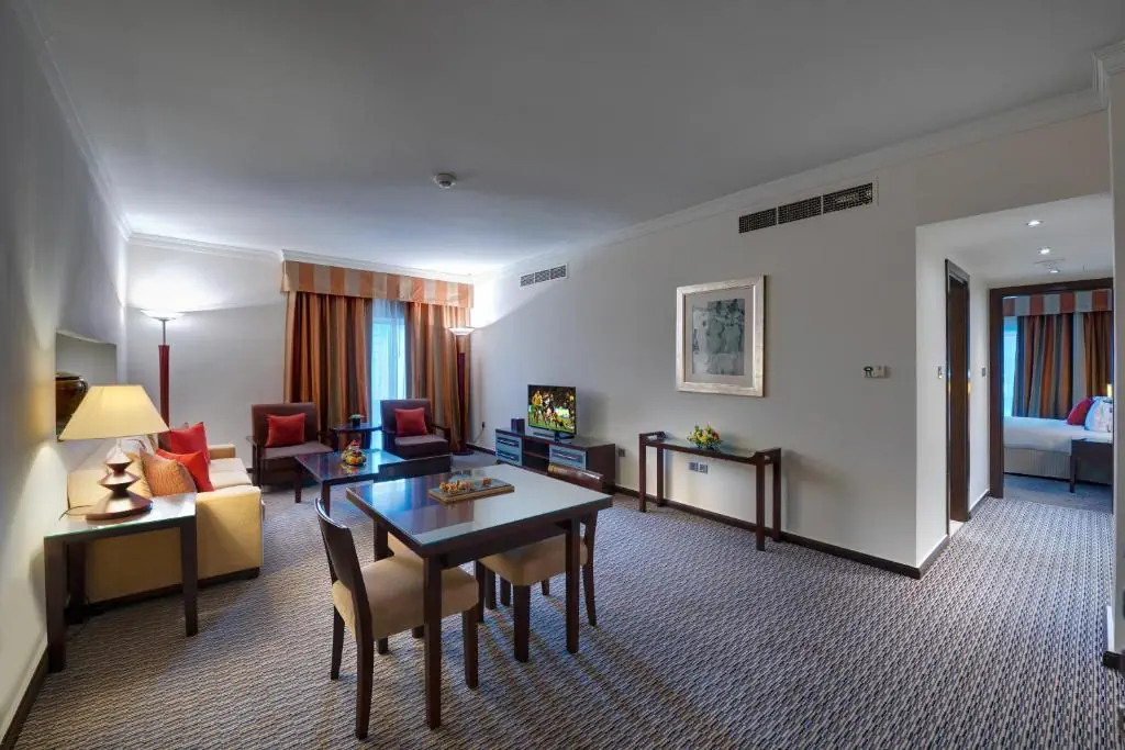 Dla max. 4 osób, Kanały telewizji: Angielski, Telefon w pokoju, wanna lub prysznic , Powierzchnia pokoju: ok. 57 m2, Dostawka: łóżko rozkładane, Rodzaj podłogi: wykładzina, Sprzątanie codziennie, Salon, część jadalniana, miejsce do pracy, 1 sypialnia, Drzwi łączące między pokojami, Maksymalna liczba osób dorosłych: 3, Maksymalna liczba dzieci: 2, Widok na miasto, Liczba łazienek: 1, Liczba toalet: 1, Zestaw do parzenia kawy i herbaty, Klimatyzacja: Klimatyzacja indywidualna