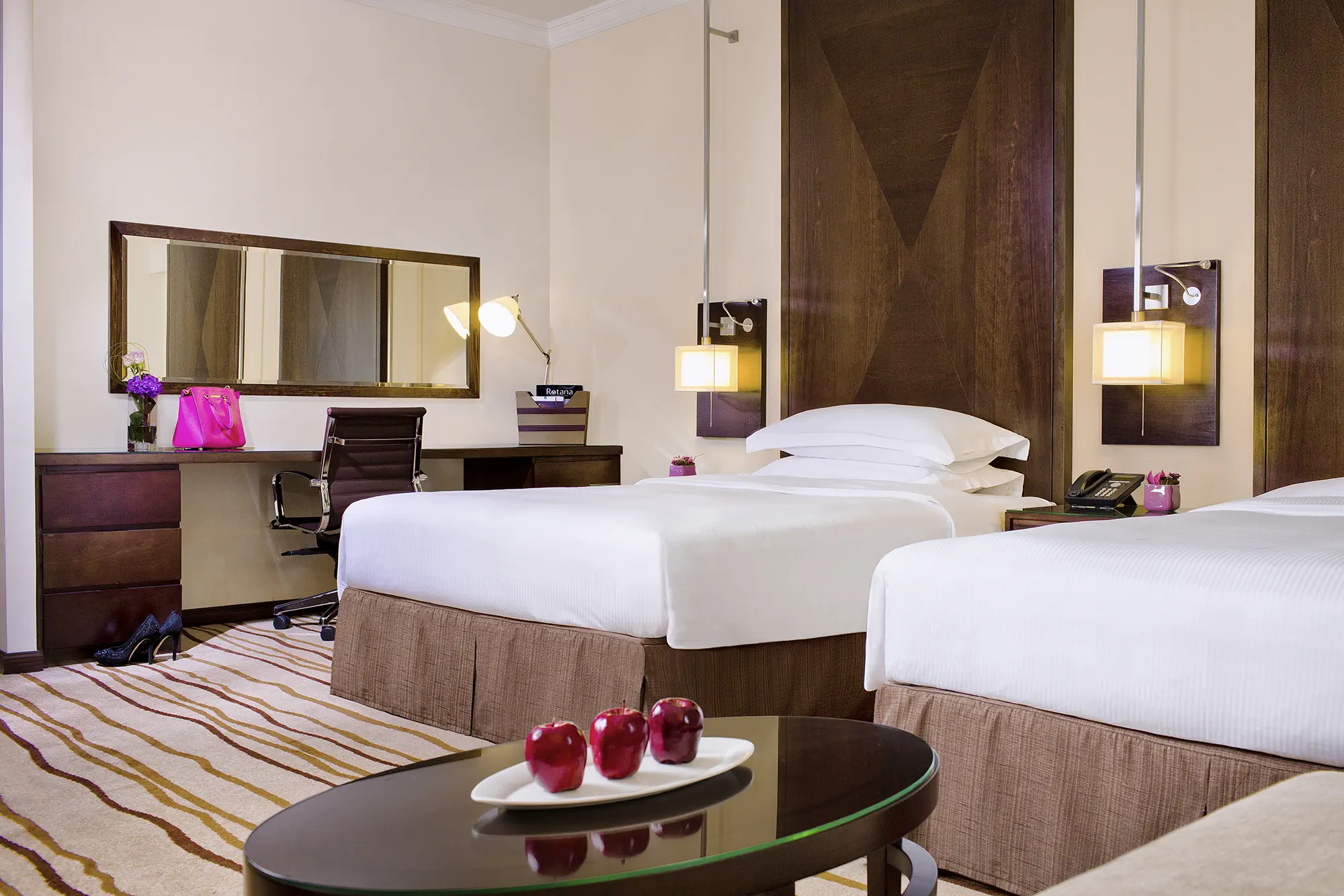 Dla max. 6 osób, Kanały telewizji: Angielski, Telefon w pokoju, wanna lub prysznic , Powierzchnia pokoju: ok. 87 m2, Dostawka: łóżko rozkładane, Rodzaj podłogi: wykładzina, Sprzątanie codziennie, Salon, część jadalniana, miejsce do pracy, 2 sypialnie, Drzwi łączące między pokojami, Maksymalna liczba osób dorosłych: 5, Maksymalna liczba dzieci: 2, Widok na miasto,Widok na basen, Liczba łazienek: 2, Liczba toalet: 3, Zestaw do parzenia kawy i herbaty, Klimatyzacja: Klimatyzacja indywidualna