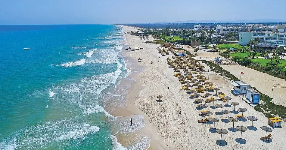 - Z drobnym piaskiem ok. 200 m. od hotelu - Dojście do plaży lokalną ścieżką - Leżaki i parasole - bezpłatne - Ręczniki plażowe dostępne po wpłaceniu depozytu ok.20 TND - Bar - bezpłatny (czynny od 10:00 do 18:00 w zależności od warunków pogodowych, napoje bezalkoholowe, piwo, kanapki)