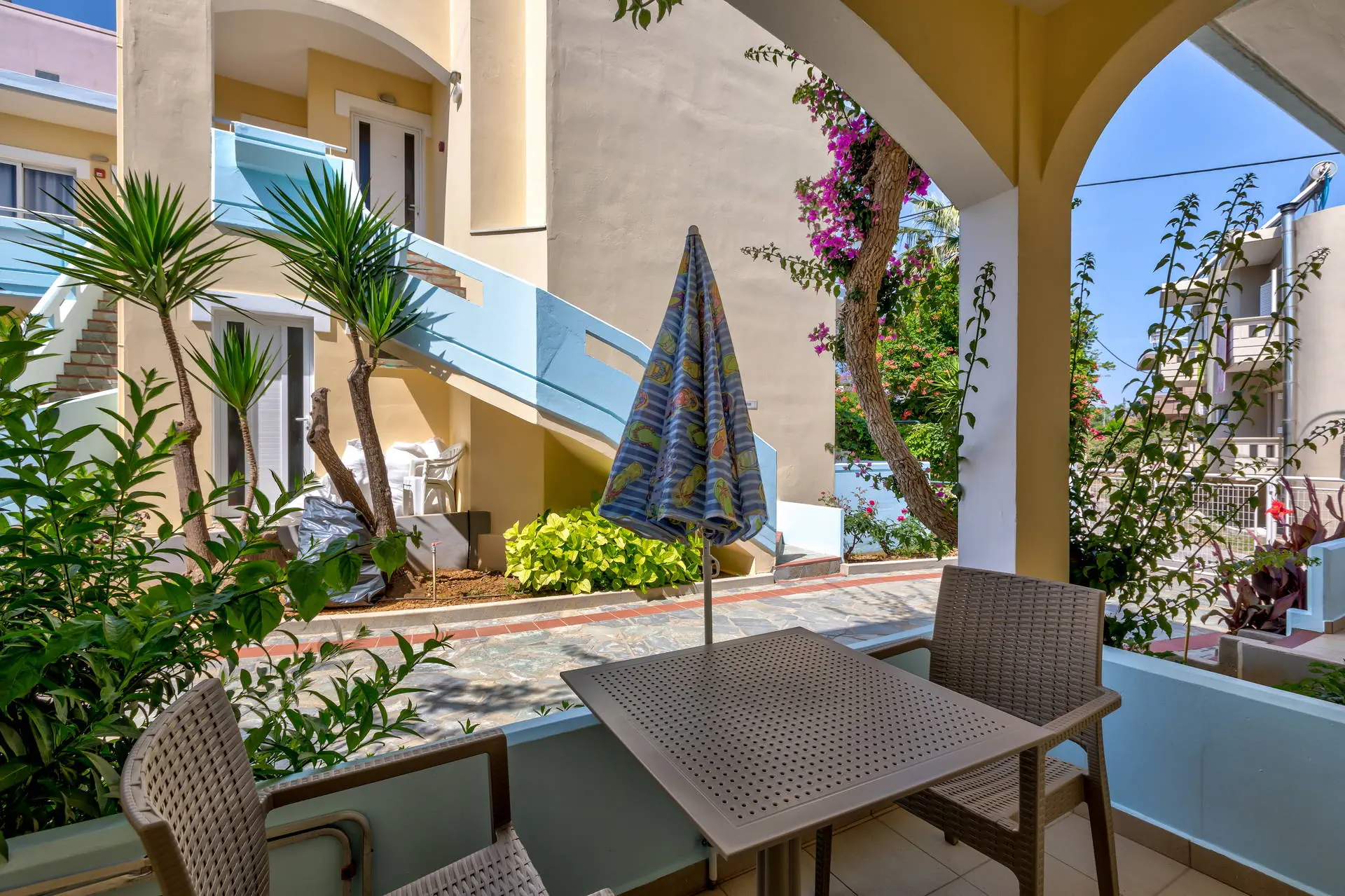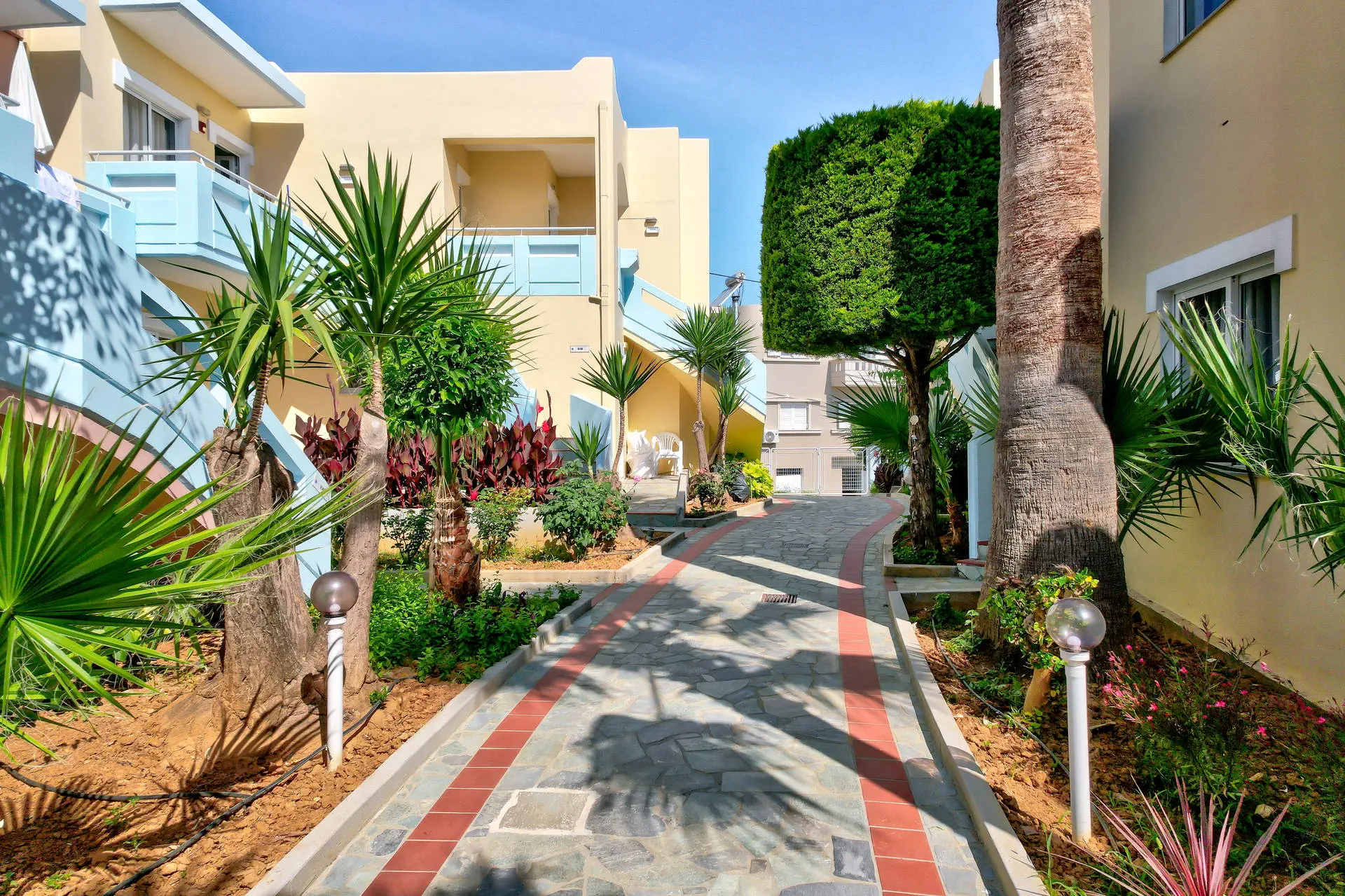 Do dyspozycji gości Obiekt składa się z kilku piętrowych pawilonów. Recepcja czynna w godz. 8.00-22.00, poza sezonem dyżur telefoniczny. 1 basen ze słodką wodą, brodzik dla dzieci, taras słoneczny z leżakami i parasolami (bezpłatnie), brak ręczników kąpielowych. Snack bar Internet WIFI darmowe dla naszych klientów w pokojach oraz przy recepcji. Kategoria lokalna C Naszym zdaniem Położony z dala od zgiełku kurortów, hotel oferuje wygodne i przestronne studia, idealne dla osób ceniących niezależność. To świetna opcja dla tych, którzy planują intensywne zwiedzanie wyspy, a jednocześnie mają ograniczony budżet. Dzięki spokojnej lokalizacji, Goście mogą relaksować się i odkrywać okolicę we własnym tempie. Plaża Plaża oddalona o około 400 metrów od hotelu. Kilka minut spaceru prowadzi do plaży. Piaszczysta z ciemnym, grubym piaskiem. Leżaki i parasole płatne (ok. 7 EUR za komplet: 2 leżaki + parasol). Pokoje Oferujemy: - dla 2 osób, składające się z obszernego pokoju dziennego z 2 łóżkami (możliwość dostawki w formie dodatkowego łóżka polowego), aneksu kuchennego z podstawowym wyposażeniem (lodówka, mała kuchenka elektryczna, naczynia i sztućce, stolik z krzesłami), łazienki (prysznic i wc) oraz balkonu lub tarasu (meble ogrodowe: 2 krzesła + stolik). W pokojach TV, klimatyzacja za dopłatą 10 EUR/dzień, 60 EUR/tydzień). Sejf za opłatą 20 EUR/tydzień, 35 EUR/2 tygodnie. (na potwierdzenie) - składające się z obszernego pokoju dziennego z 2 łóżkami i oddzielnej sypialni (3 łóżko normalnych wymiarów, 4 - łóżko polowe), aneksu kuchennego z podstawowym wyposażeniem (lodówka, kuchenka, naczynia i sztućce, stolik z krzesłami), łazienki (prysznic i wc) oraz balkonu lub tarasu (meble ogrodowe: 2 krzesła + stolik). W pokojach TV (tylko lokalne kanały), klimatyzacja za dopłatą 10 EUR/dzień, 60 EUR/tydzień). Sejf za opłatą 20 EUR/tydzień, 35 EUR/2 tygodnie. Apartament może być zamieszkany max. przez 4 osoby dorosłe. Obiekt zapewnia bezpłatnie łóżeczka dla dzieci do 2 lat - konieczna rezerwacja. Położenie Obiekt usytuowany jest na wzgórzu, w ładnym ogrodzie, w cichej części Kato Daratso. Znajduje się około 4 km od centrum Chanii, w pobliżu sklepików i tawerny. Dobre połączenie lokalnymi autobusami, przystanek autobusowy znajduje się około 70 m od apartamentów. Do lotniska w Chanii ok. 23 km.Do lotniska w Heraklionie ok. 143 km. Strona www www.mediterranea-apts.com Wyżywienie Pozostałe informacje: We własnym zakresie.