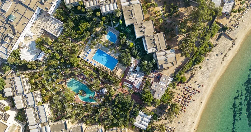 - Recepcja - 3 restauracje w tym płatne - 2 bary - 2 baseny dla dorosłych, basen dla dzieci - Centrum SPA - płatne - Minimarket, sklepy - płatne - Sejfy w recepcji (płatny, ok. 3 TND / dzień) - Kantor wymiany walut - Oficjalna kategoria 3*
