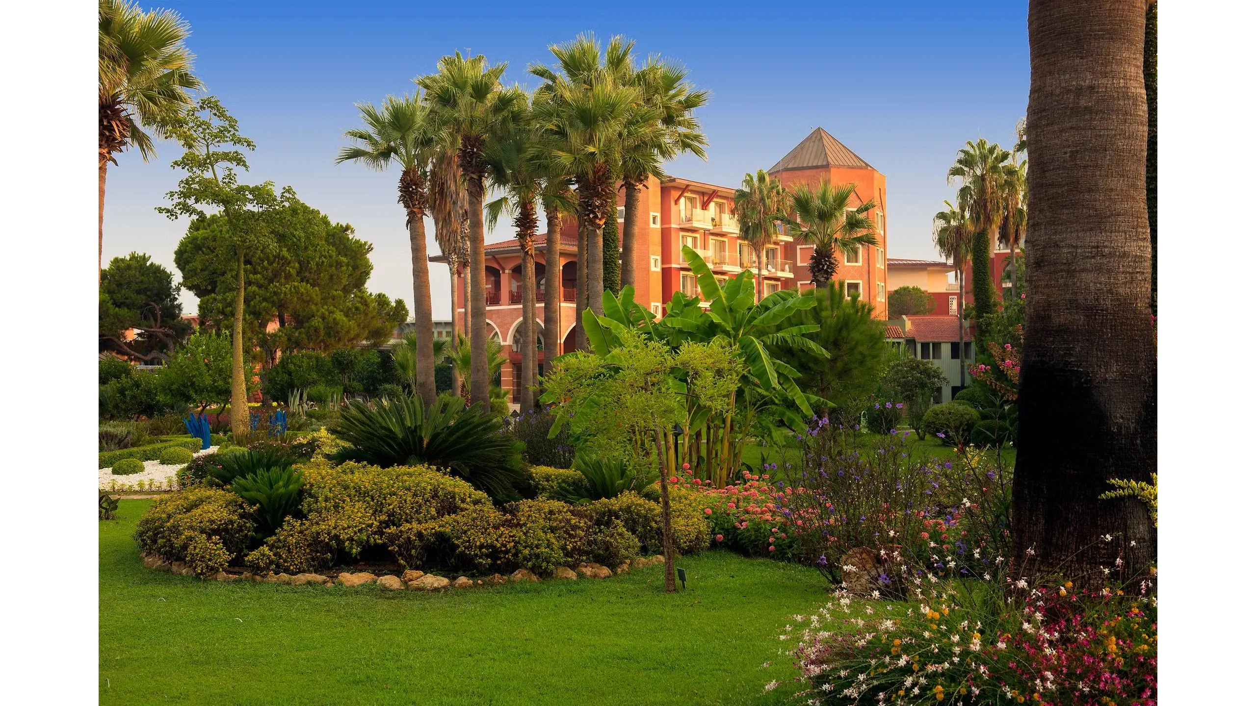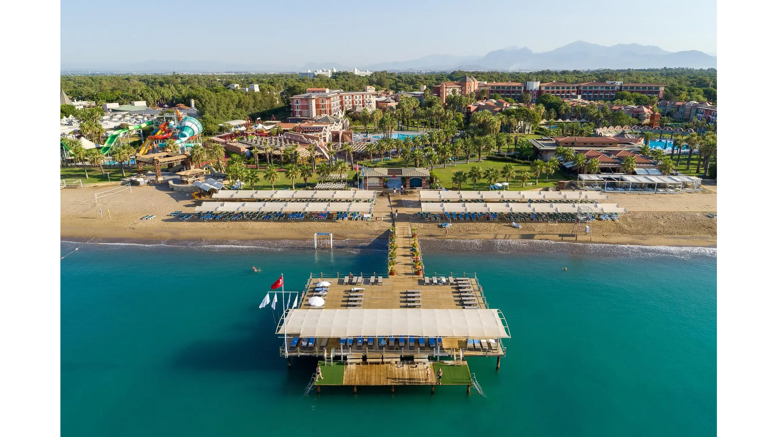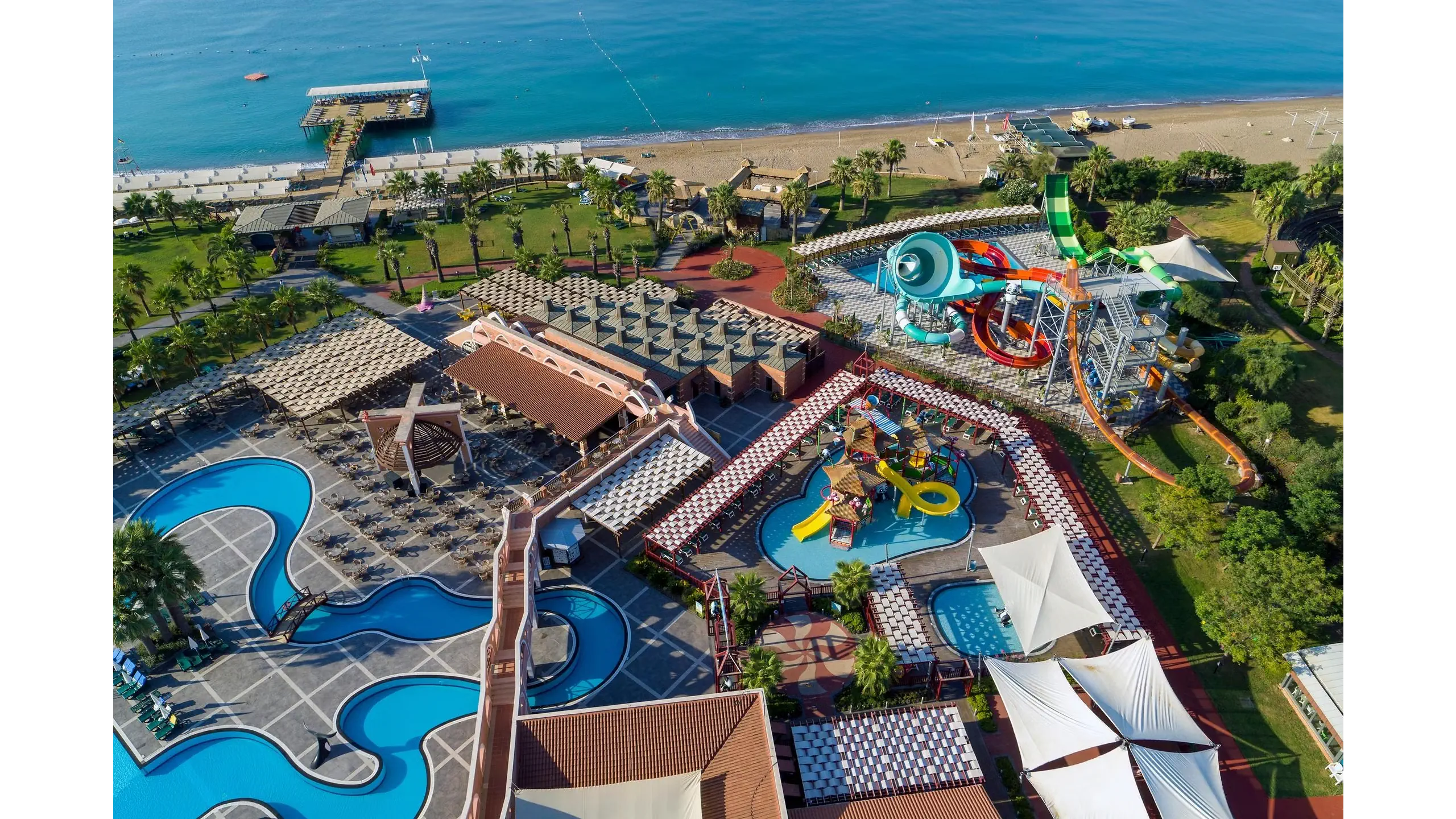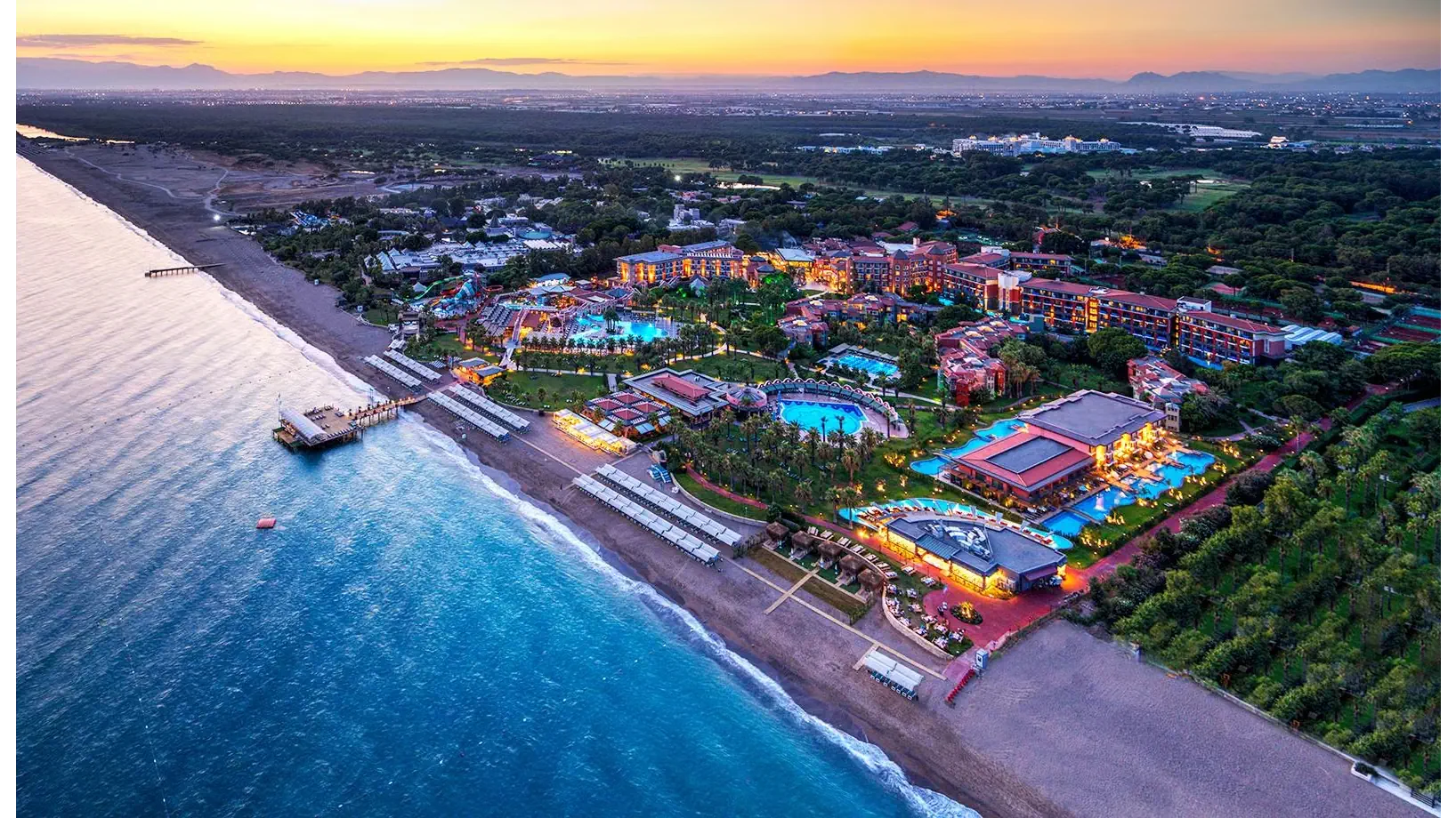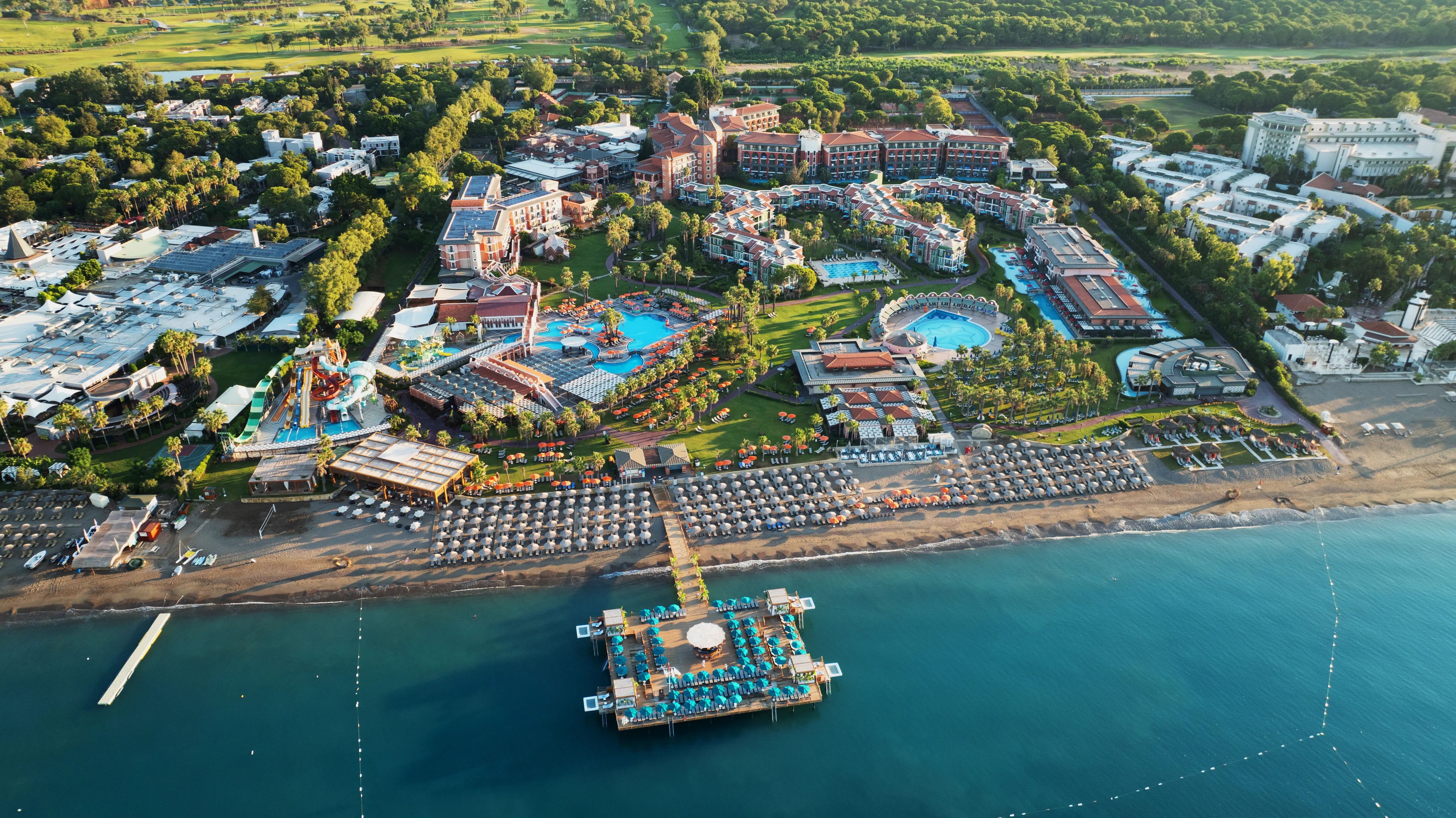 Kompleks hotelowy, który spełni oczekiwania nawet najbardziej wymagających klientów. Wspaniałe położenie tuż przy pięknej piaszczystej i szerokiej plaży z łagodnym zejściem do morza czyni go jeszcze bardziej atrakcyjnym. W niedalekiej odległości do centrum Kadriye i Belek, gdzie znajduje się wiele sklepów, restauracji i barów. Liczne atrakcje dla dzieci, zjeżdżalnie wodne, miniklub ucieszą najmłodszych, a aktywni Goście mogą wybierać spośród szerokiej gamy zajęć sportowo – rekreacyjnych. To wspaniałe miejsce na wypoczynek w otoczeniu bujnej roślinności i eleganckich wnętrz dla całej rodziny.