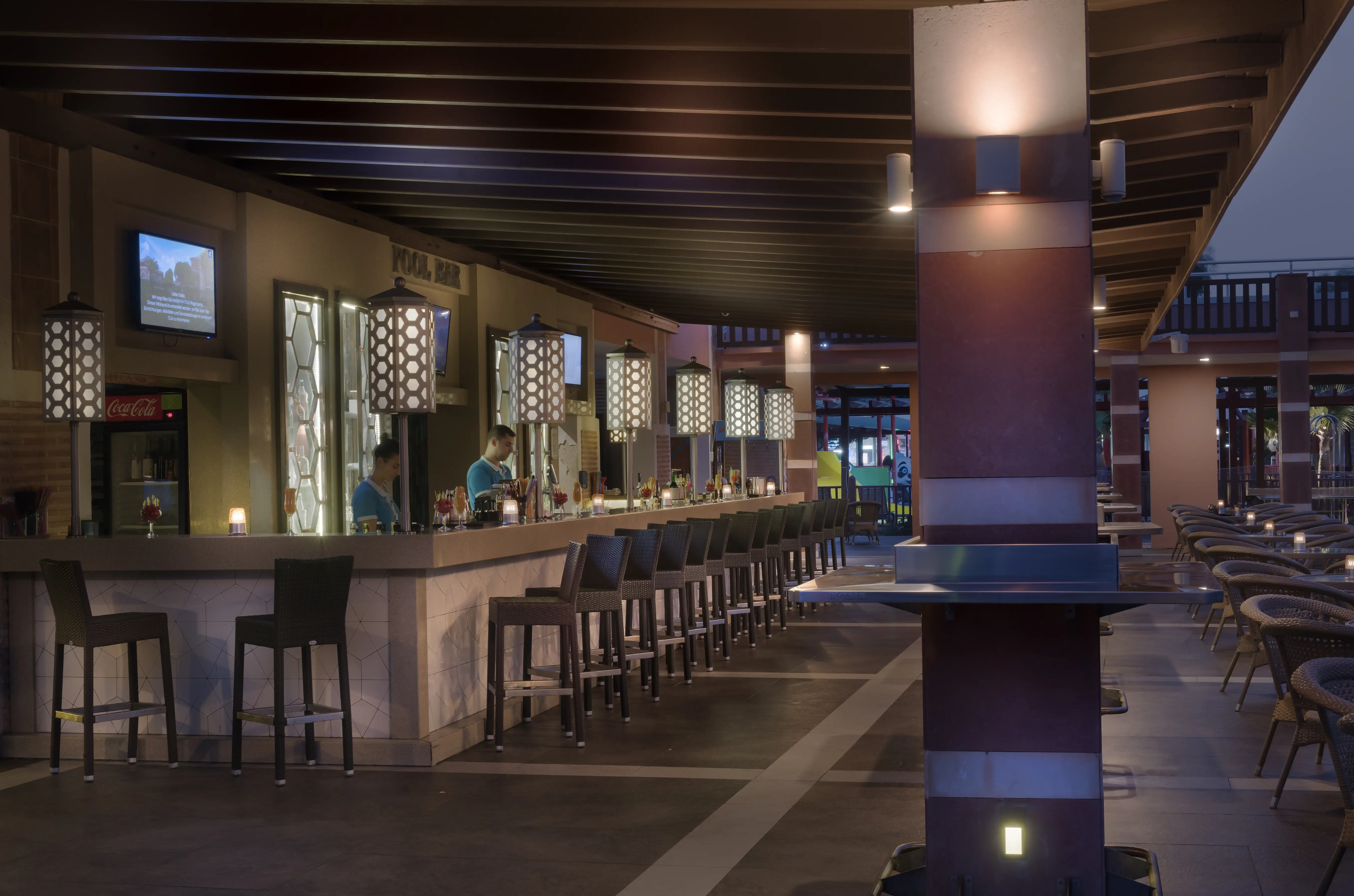 Śniadanie (07:00 - 10:00) - Mega Restaurant, stół szwedzki, Późne śniadanie (10:00 - 11:00) - Mega Restaurant, stół szwedzki, Obiad (13:00 - 14:30) - Mega Restaurant, stół szwedzki, Przekąski (12:30 - 15:15) - Saray Snack Restaurant, określone menu, Przekąski (11:00 - 18:00) - Pool Food Court, stół szwedzki, Przekąski (12:00 - 15:30) - GOZLEME (Gozleme Types), stół szwedzki, Przekąski (12:00 - 15:30) - Mega Food, określone menu, Podwieczorek (11:00 - 21:00) - Cafe House, stół szwedzki, Kolacja (19:00 - 21:30) - Mega Restaurant, stół szwedzki, Późna kolacja (22:00 - 07:00) - La Prima A La Carte Snack, określone menu, Barbeque Court (19:00 - 21:30) (19:00 - 21:30), raz w tygodniu, Kuchnia: międzynarodowa, Wymagana rezerwacja: Tak ¹⁾, La Prima Restaurant (19:00 - 21:30) (19:00 - 21:30), raz w tygodniu, Kuchnia: Włoska, Wymagana rezerwacja: Tak ¹⁾, El Porto Restaurant (19:00 - 21:30) (19:00 - 21:30), raz w tygodniu, Kuchnia: Meksykańska, Wymagana rezerwacja: Tak ¹⁾, Red Far East Restaurant (19:00 - 21:30) (19:00 - 21:30), raz w tygodniu, Kuchnia: Chińska, Japońska, Wymagana rezerwacja: Tak ¹⁾, Lagos Restaurant (18:45 - 21:15) (18:45 - 21:15), raz w tygodniu, Kuchnia: owoce morza , Wymagana rezerwacja: Tak ¹⁾, Steak House (08:30 - 11:00) (08:30 - 11:00), raz w tygodniu, Kuchnia: międzynarodowa, Wymagana rezerwacja: Tak ¹⁾, International Breakfast (19:00 - 21:30) (19:00 - 21:30), raz w tygodniu, Kuchnia: międzynarodowa, Wymagana rezerwacja: Tak ¹⁾, Brazilian Restaurant (19:00 - 21:30) (19:00 - 21:30), bez limitu, Kuchnia: Brazylijska, Wymagana rezerwacja: Tak ¹⁾, Mega Bar (24h), Napoje: alkohole lokalne, wybrane alkohole importowane, napoje bezalkoholowe (24h), Tenis Bar (08:30 - 18:30), Napoje: alkohole lokalne, napoje bezalkoholowe (08:30 - 18:30), Lobby Bar (08:30 - 00:00), Napoje: alkohole lokalne, wybrane alkohole importowane, napoje bezalkoholowe (08:30 - 00:00), Pool Bar (08:30 - 00:00), Napoje: alkohole lokalne, wybrane alkohole importowane, napoje bezalkoholowe (08:30 - 00:00), Cafe House (08:30 - 00:00), Napoje: alkohole lokalne, napoje bezalkoholowe (08:30 - 00:00), Turkuaz Bar (08:30 - 19:00), Napoje: alkohole lokalne, wybrane alkohole importowane, napoje bezalkoholowe (08:30 - 19:00), Beach Bar (AllatRa) (10:00 - 02:00), Napoje: alkohole lokalne, wybrane alkohole importowane, napoje bezalkoholowe (10:00 - 02:00), Disco Bar-Beach Bar AllatRa (23:00 - 02:00), Napoje: alkohole lokalne, wybrane alkohole importowane, napoje bezalkoholowe (23:00 - 02:00), Pier Bar (10:00 - 19:00), Napoje: alkohole lokalne, wybrane alkohole importowane, napoje bezalkoholowe (10:00 - 19:00), napoje bezalkoholowe, alkohole lokalne, wybrane alkohole importowane, lody, pakiety dla nowożeńców, pakiety urodzinowe (na życzenie), cukiernia, room service ¹⁾, Minibar w pokoju ¹⁾ - dodatkowo płatne