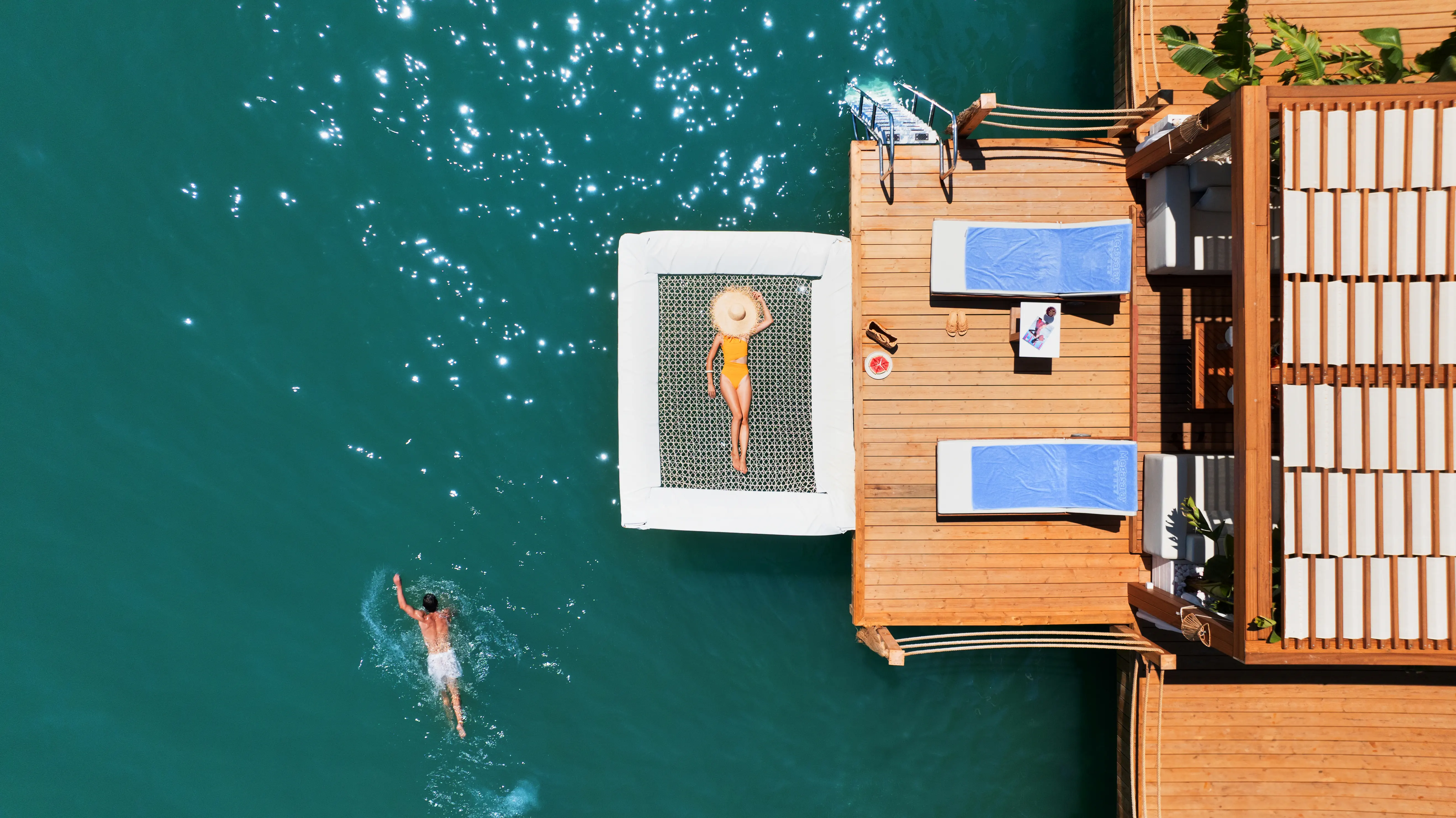 Prywatna, Piaszczysta, Piaszczysto-żwirowe zejście do morza, odleglość do plaży: 0 m, długość plaży: 400 m, pomost na plaży, Parasole - bezpłatnie, Leżaki - bezpłatnie, Ręczniki - bezpłatnie, Pawilony na plaży - płatne, Beach Bar - bezpłatnie, Prysznic