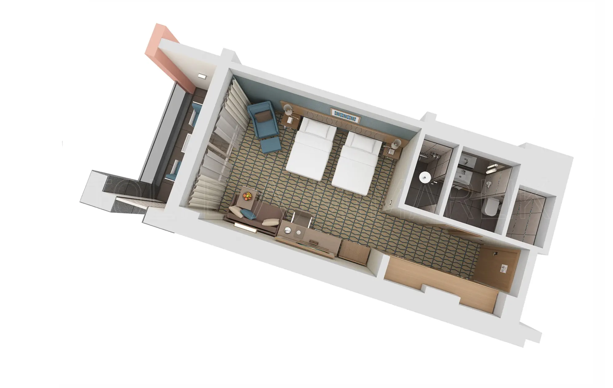Dla max. 3 osób, Przestrzeń zewnętrzna: Balkon, Kanały telewizji: Angielski, Telefon w pokoju, prysznic, Powierzchnia pokoju: ok. 29 m2, Dostawka: łóżko rozkładane, Rodzaj podłogi: laminat, Sprzątanie codziennie, 1 sypialnia, Maksymalna liczba osób dorosłych: 3, Maksymalna liczba dzieci: 0, Widok na ogród, Liczba łazienek: 1, Liczba toalet: 1, Klimatyzacja: Klimatyzacja centralna, Działa w godzinach: 23:59-23:59Marzec, Kwiecień, Maj, Czerwiec, Lipiec, Sierpień, Wrzesień, Październik, Listopad
