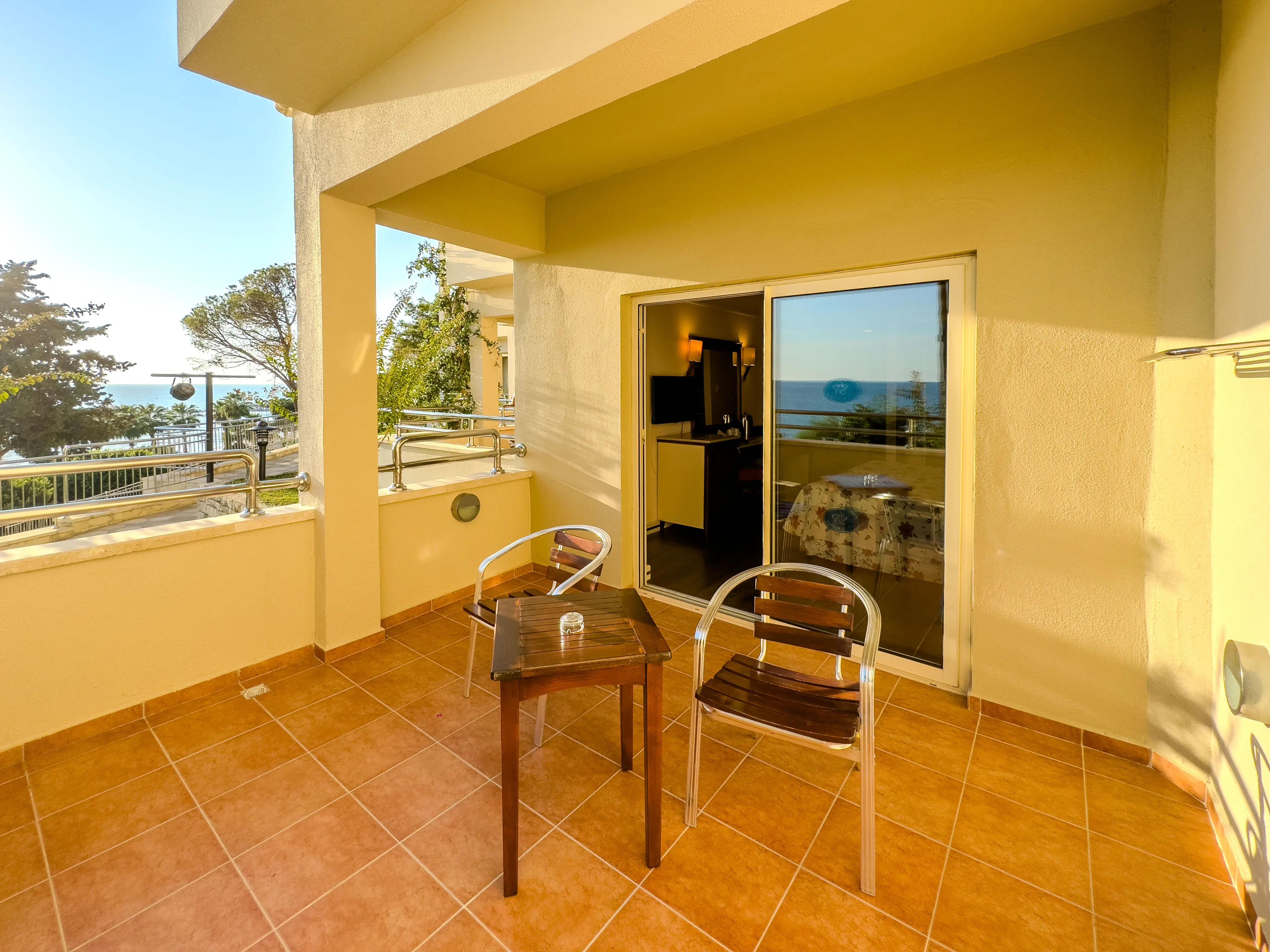 Dla max. 2 osób, Przestrzeń zewnętrzna: Balkon, Kanały telewizji: Angielski, Telefon w pokoju, prysznic, Powierzchnia pokoju: ok. 35 m2, Dostawka: sofa, Rodzaj podłogi: laminat, Sprzątanie codziennie, 1 sypialnia, Drzwi przesuwne, Maksymalna liczba osób dorosłych: 3, Maksymalna liczba dzieci: 2, Od strony morza, Liczba łazienek: 1, Liczba toalet: 1, Zestaw do parzenia kawy i herbaty, Klimatyzacja: Klimatyzacja centralna, Działa w godzinach: 24h