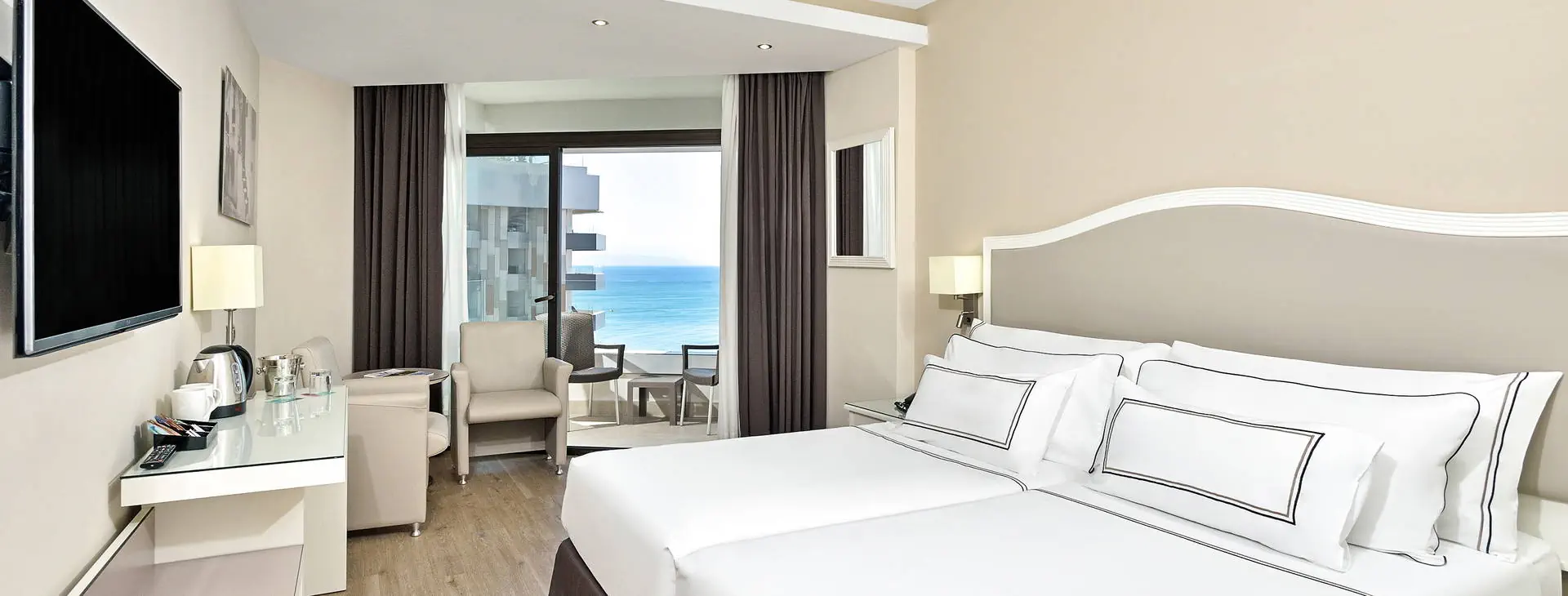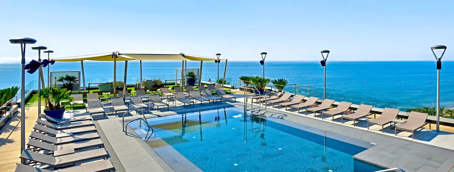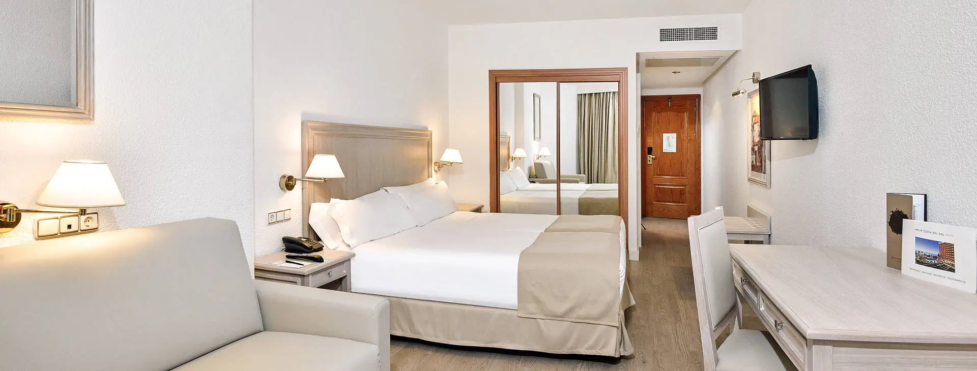 Położenie: Hotel znajduje się w znanym, pełnym życia kurorcie Torremolinos. Bezpośrednio przy przyciągającej wielu turystów nadmorskiej promenadzie, gdzie znaleźć można wiele lokalnych restauracji, barów i kawiarni. W odległości ok. 10 minut spacerem od hotelu znajduje się dworzec kolejowy. Do lotniska w Maladze ok. 8 km. Plaża: Tuż przy hotelu znajduje się szeroka, piaszczysta plaża, oddzielona jedynie nadmorską promenadą. Hotel zapewnia ręczniki basenowe (depozyt ok.10 EUR/ręcznik). Leżaki i parasole na plaży płatne (ok. 12 EUR/dzień). Do dyspozycji gości: Hotel rekomendowany dla osób powyżej 16 roku życia. Recepcja z przestronnym lobby, windy, bar, restauracja bufetowa i a'la carte, basen z tarasem słonecznym z leżakami i parasolami usytuowany na dachu, parking (płatny ok 20 Eur/dobę). Hotel zapewnia ręczniki basenowe (możliwa opłata za wymianę ok.1 Eur). Pokoje: W tym kompletnie wyremontowanym w 2019r. hotelu znajduje się 540 komfortowo wyposażonych i nowoczesnych pokoi. Wszystkie klimatyzowane, z łazienką (suszarka do włosów, kosmetyki kąpielowe), TV sat, telefonem, sejfem (płatny dodatkowo), minibarem (za opłatą), czajnikiem oraz balkonem lub tarasem (meble balkonowe). Pokój standardowy z widokiem na morze (pow. ok .28m2) - dla max. 3 osób z łóżkiem typu queen size lub dwoma pojedynczymi łóżkami. Pokój deluxe z widokiem na morze (pow. ok .28m2) - dla max. 3 osób z łóżkiem typu queen size lub dwoma pojedynczymi łóżkami, zlokalizowane na wyższych piętrach, w pokoju zestaw do parzenia kawy i herbaty. Wyżywienie: Śniadania i obiadokolacje w formie bogatego bufetu. Istniej możliwość dopłaty do 3 posiłków - napoje do posiłków płatne dodatkowo. Program sportowy i animacyjny: Hotel nie prowadzi animacji. Bezpłatnie: siłownia. Dodatkowo płatne: Thalasso SPA: sauna, wanna z hydromasażem oraz jacuzzi. Internet: Wifi gratis w całym hotelu. Kategoria lokalna: **** Strona www:
