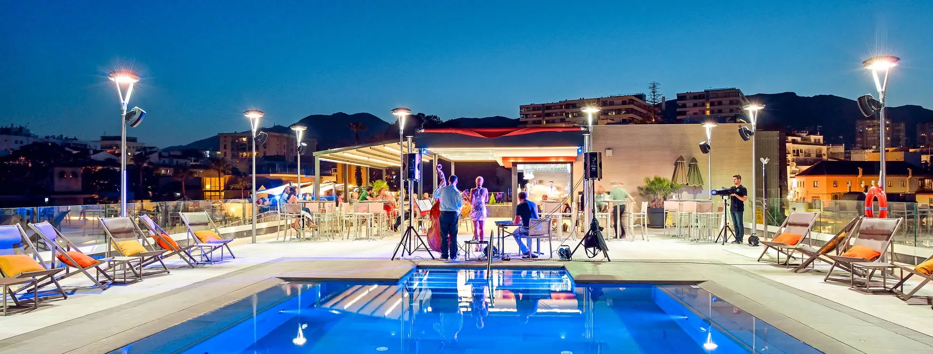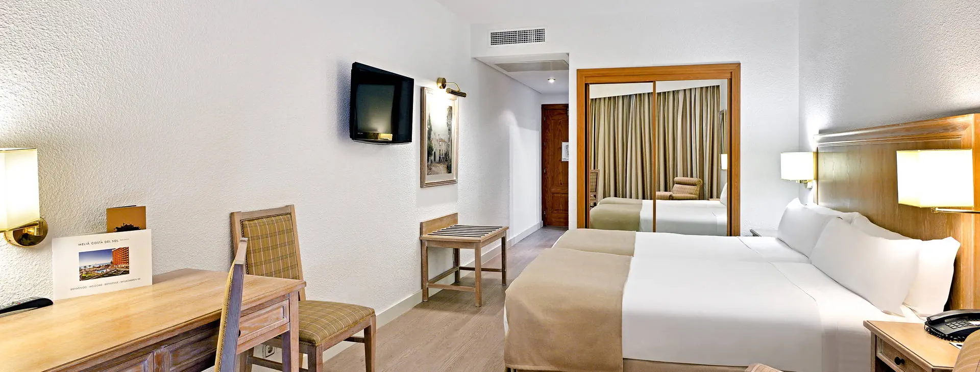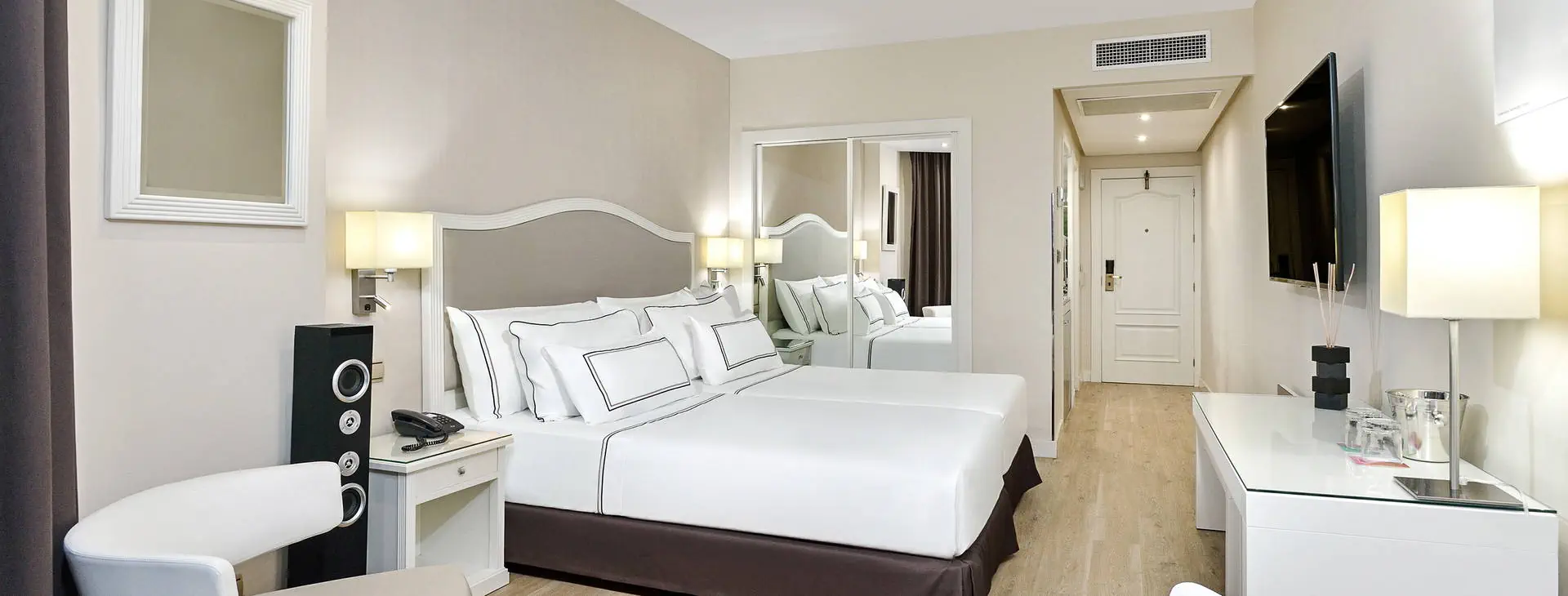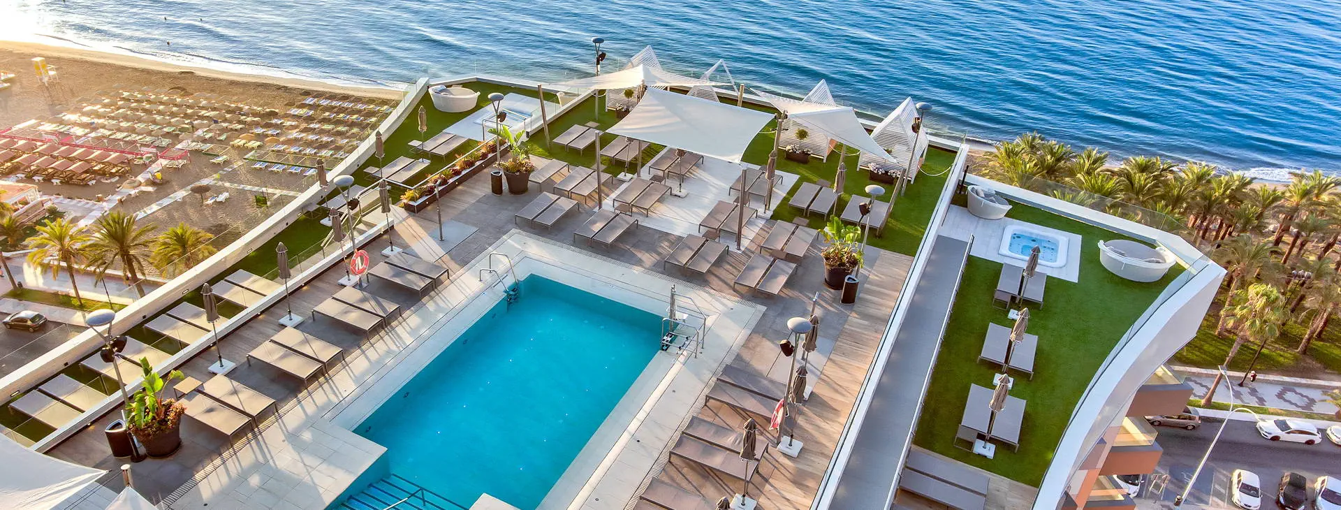 Położenie: Hotel znajduje się w znanym, pełnym życia kurorcie Torremolinos. Bezpośrednio przy przyciągającej wielu turystów nadmorskiej promenadzie, gdzie znaleźć można wiele lokalnych restauracji, barów i kawiarni. W odległości ok. 10 minut spacerem od hotelu znajduje się dworzec kolejowy. Do lotniska w Maladze ok. 8 km. Plaża: Tuż przy hotelu znajduje się szeroka, piaszczysta plaża, oddzielona jedynie nadmorską promenadą. Hotel zapewnia ręczniki basenowe (depozyt ok.10 EUR/ręcznik). Leżaki i parasole na plaży płatne (ok. 12 EUR/dzień). Do dyspozycji gości: Hotel rekomendowany dla osób powyżej 16 roku życia. Recepcja z przestronnym lobby, windy, bar, restauracja bufetowa i a'la carte, basen z tarasem słonecznym z leżakami i parasolami usytuowany na dachu, parking (płatny ok 20 Eur/dobę). Hotel zapewnia ręczniki basenowe (możliwa opłata za wymianę ok.1 Eur). Pokoje: W tym kompletnie wyremontowanym w 2019r. hotelu znajduje się 540 komfortowo wyposażonych i nowoczesnych pokoi. Wszystkie klimatyzowane, z łazienką (suszarka do włosów, kosmetyki kąpielowe), TV sat, telefonem, sejfem (płatny dodatkowo), minibarem (za opłatą), czajnikiem oraz balkonem lub tarasem (meble balkonowe). Pokój standardowy z widokiem na morze (pow. ok .28m2) - dla max. 3 osób z łóżkiem typu queen size lub dwoma pojedynczymi łóżkami. Pokój deluxe z widokiem na morze (pow. ok .28m2) - dla max. 3 osób z łóżkiem typu queen size lub dwoma pojedynczymi łóżkami, zlokalizowane na wyższych piętrach, w pokoju zestaw do parzenia kawy i herbaty. Wyżywienie: Śniadania i obiadokolacje w formie bogatego bufetu. Istniej możliwość dopłaty do 3 posiłków - napoje do posiłków płatne dodatkowo. Program sportowy i animacyjny: Hotel nie prowadzi animacji. Bezpłatnie: siłownia. Dodatkowo płatne: Thalasso SPA: sauna, wanna z hydromasażem oraz jacuzzi. Internet: Wifi gratis w całym hotelu. Kategoria lokalna: **** Strona www: