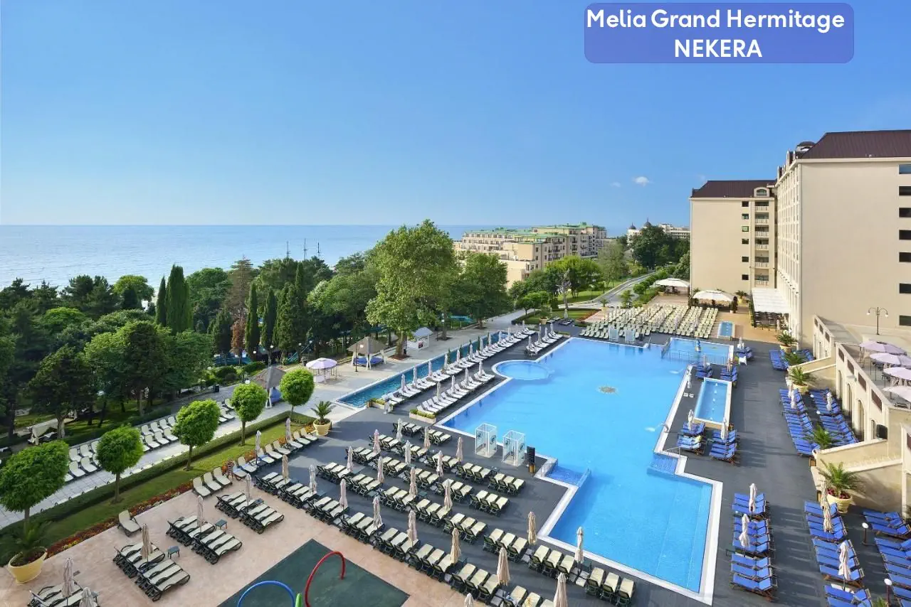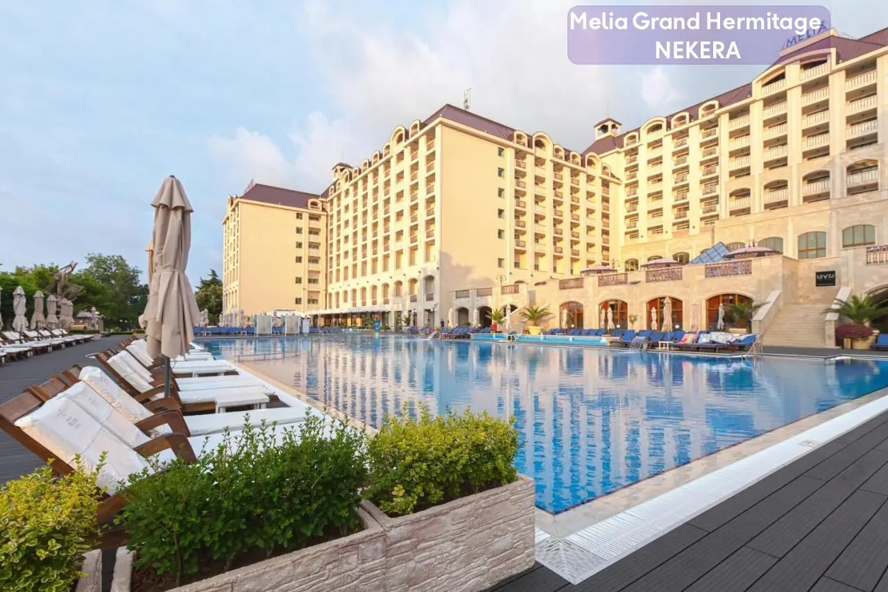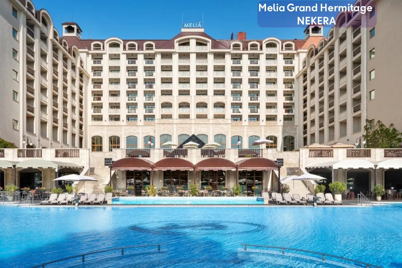 Melia Grand Hermitage to pięciogwiazdkowy obiekt położony w malowniczym kurorcie Złote Piaski na bułgarskiej Riwerze. Dzięki swojej lokalizacji, zaledwie 100 metrów od piaszczystej plaży i w pobliżu centrum kurortu, stanowi doskonałą bazę na luksusowe wakacje. Hotel oferuje komfortowe warunki zarówno dla par, jak i rodzin z dziećmi, zapewniając szeroki wachlarz udogodnień i atrakcji.