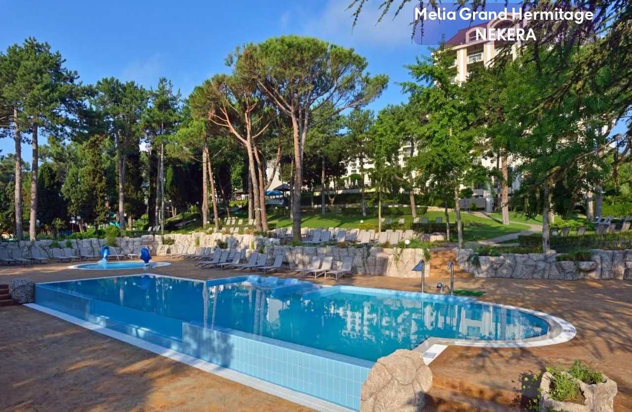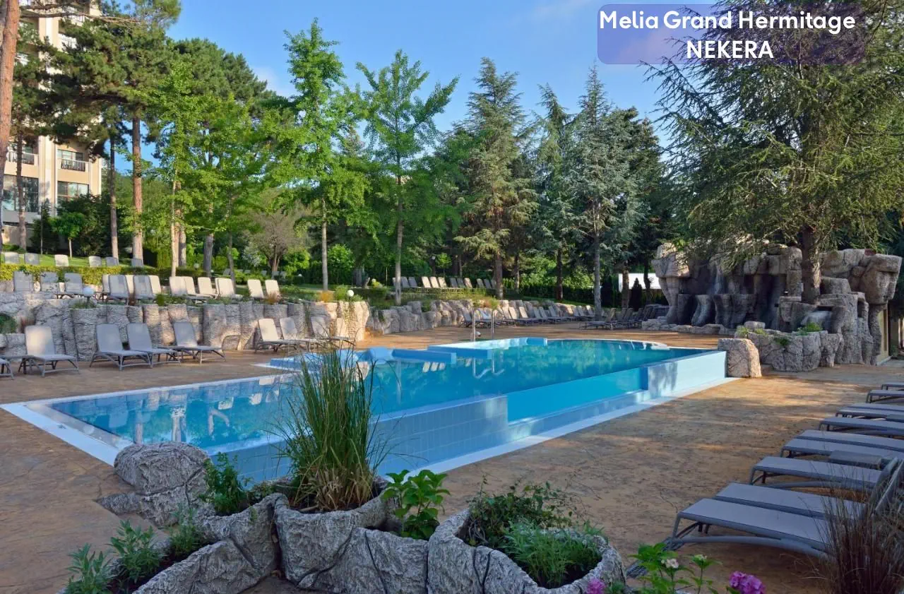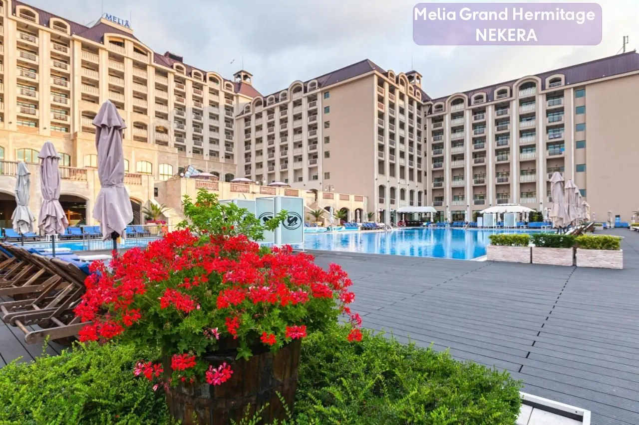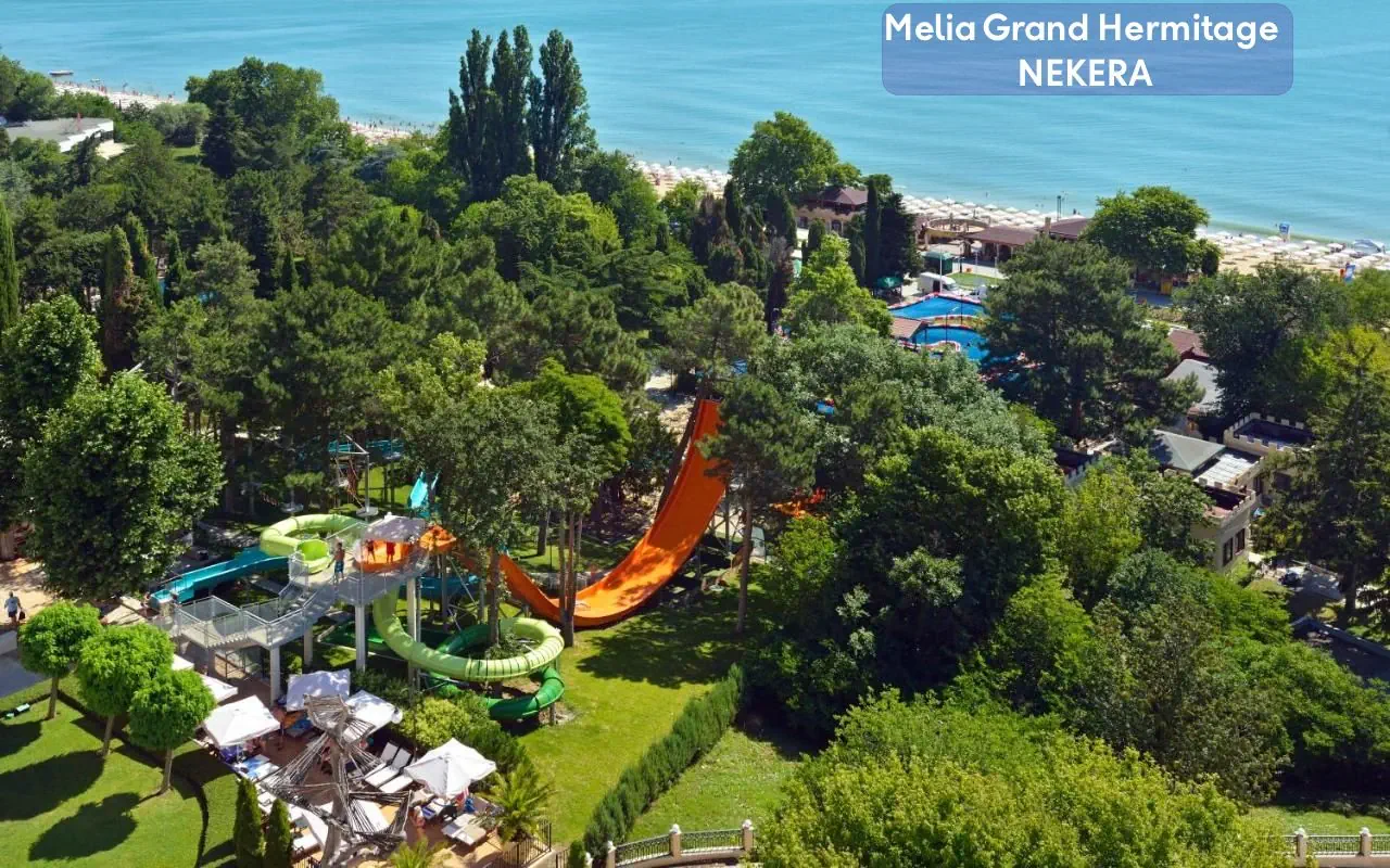 Melia Grand Hermitage to pięciogwiazdkowy obiekt położony w malowniczym kurorcie Złote Piaski na bułgarskiej Riwerze. Dzięki swojej lokalizacji, zaledwie 100 metrów od piaszczystej plaży i w pobliżu centrum kurortu, stanowi doskonałą bazę na luksusowe wakacje. Hotel oferuje komfortowe warunki zarówno dla par, jak i rodzin z dziećmi, zapewniając szeroki wachlarz udogodnień i atrakcji.