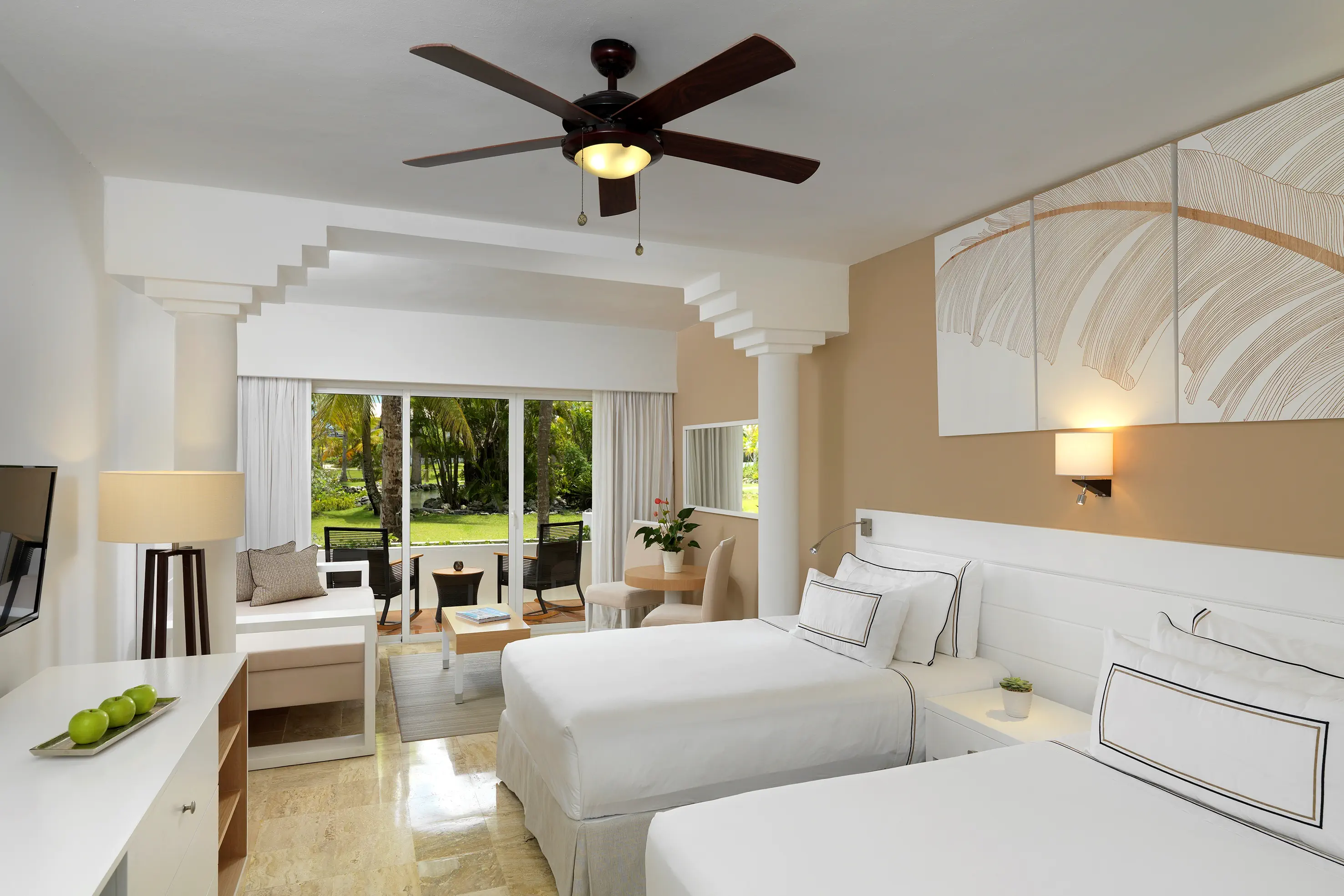 Dla max. 2 osób, Przestrzeń zewnętrzna: Balkon lub taras, Kanały telewizji: Angielski, Telefon w pokoju, wanna lub prysznic , Powierzchnia pokoju: ok. 42 m2, Dostawka: sofa, Rodzaj podłogi: płytki, Sprzątanie codziennie, 1 sypialnia, Maksymalna liczba osób dorosłych: 2, Maksymalna liczba dzieci: 0, Widok na ogród,Widok na basen, Liczba łazienek: 1, Liczba toalet: 1, Klimatyzacja: Klimatyzacja indywidualna