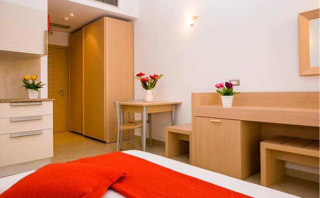 Dla max. 4 osób, Przestrzeń zewnętrzna: Balkon lub taras, Kanały telewizji: Polski, Angielski, Aneks kuchenny, prysznic, Powierzchnia pokoju: ok. 25 - 30 m2, Rodzaj podłogi: płytki, Sprzątanie codziennie, Salon, 1 sypialnia, Drzwi łączące między pokojami, Maksymalna liczba osób dorosłych: 4, Maksymalna liczba dzieci: 2, Widok na ogród, Liczba łazienek: 1, Liczba toalet: 1, Klimatyzacja: Nieznany