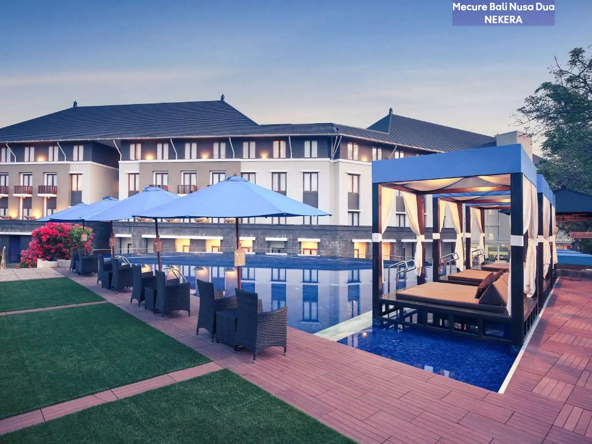 Czterogwiazdkowy hotel w nowoczesnym stylu z elementami tradycyjnej architektury balijskiej. Położony w spokojnej części prestiżowego kurortu Nusa Dua, otoczony tropikalnym ogrodem i laguną, oferuje komfortowe zakwaterowanie, basen w formie laguny oraz prywatną plażę hotelową z bezpłatnym transferem. Idealny wybór dla par i rodzin szukających relaksu w eleganckiej scenerii Bali.