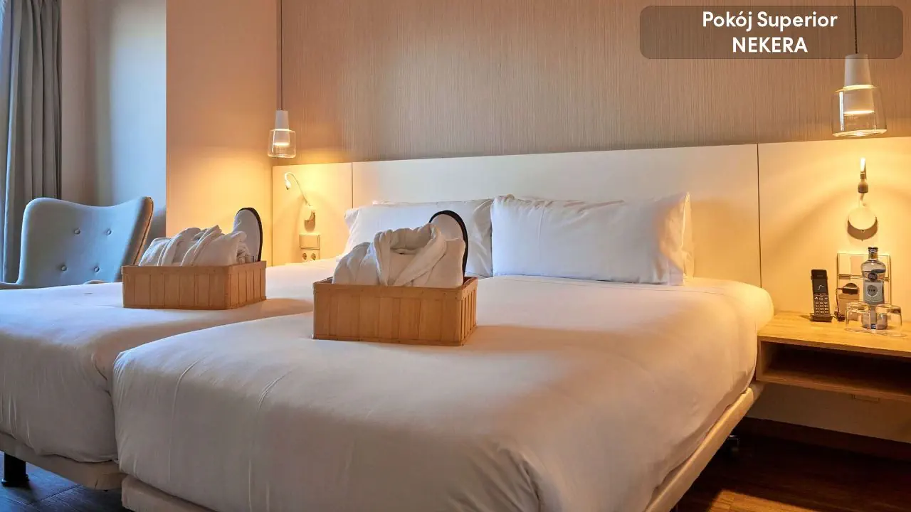 Pokój Standardowy - dwa łóżka pojedyncze, maksymalnie dla 2 osób, powierzchnia od około 24m2, widok na miasto, minibar za dodatkową opłatą, mała lodówka, czajnik, prywatna łazienka z wanną lub prysznicem i suszarką do włosów, TV, sejf klimatyzacja, biurko Pokój Superior - jedno łóżko podwójne, lub dwa łożka pojedyncze, maksymalnie dla 2 osób, powierzchnia od około 20m2, z widokiem panoramicznym, taras. minibar za dodatkową opłatą, zestaw do parzenia kawy lub herbaty, mała lodówka, czajnik, prywatna łazienka z wanną lub prysznicem i suszarką do włosów, TV, klimatyzacja, żelazko i deska do prasowania, sejf.