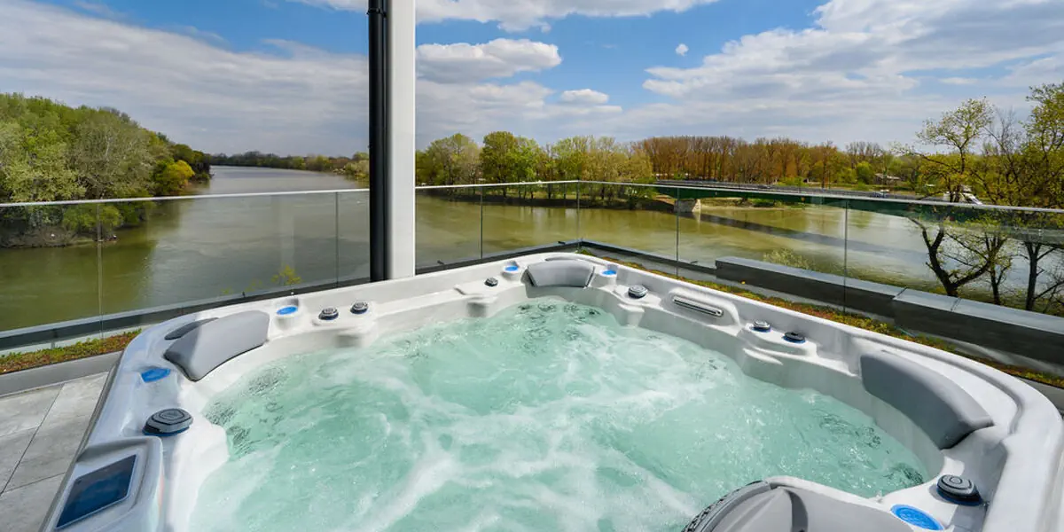 Nowoczesny i bogato wyposażony apartament z odrębną sypialnią i pokojem dziennym, z jacuzzi na balkonie lub tarasie