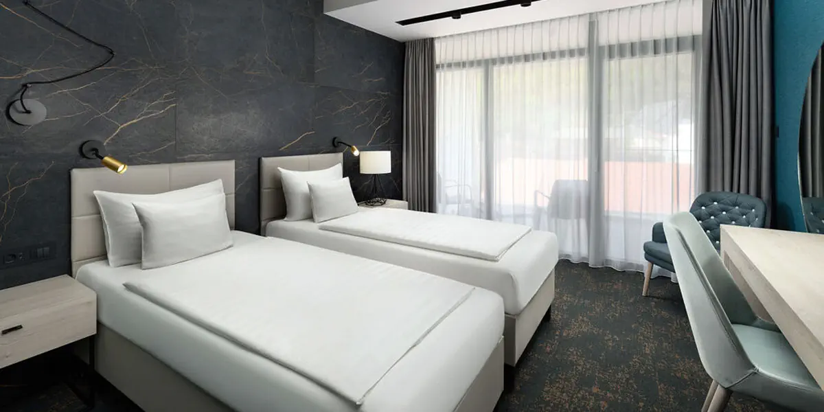 Nowoczesny i bogato wyposażony pokój z balkonem i łazienką