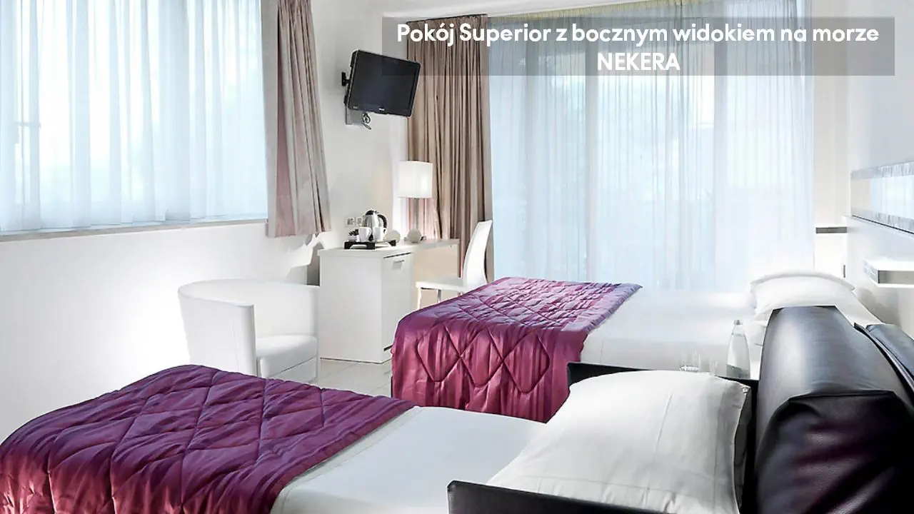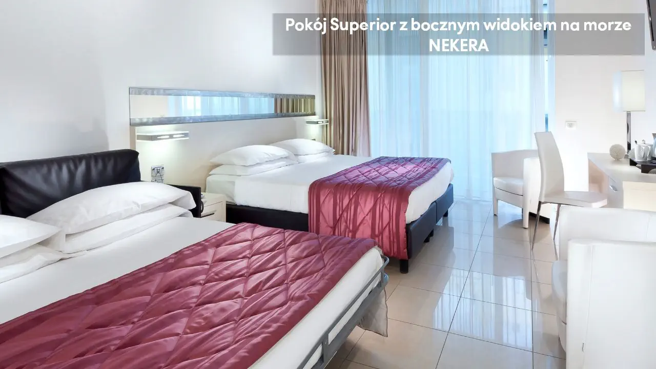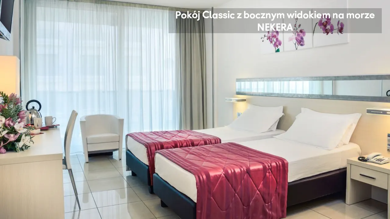 Pokój Classic z bocznym widokiem na morze: ok. 20 m2, mogący zakwaterować do dwóch osób, jedno łóżko podwójne i łóżko pojedyncze, TV, Wi-Fi, klimatyzacja, sejf, zestaw do parzenia kawy i herbaty, prywatna łazienka (prysznic, toaleta, umywalka, suszarka do włosów, lustro), balkon z bocznym widokiem na morze. Pokój Superior z bocznym widokiem na morze: ok. 25 m2, mogący zakwaterować do czterech osób, jedno łóżko podwójne i łóżko pojedyncze lub rozkładana sofa, balkon z bocznym widokiem na morze; poza tym wyposażony jak pokój Classic z bocznym widokiem na morze.