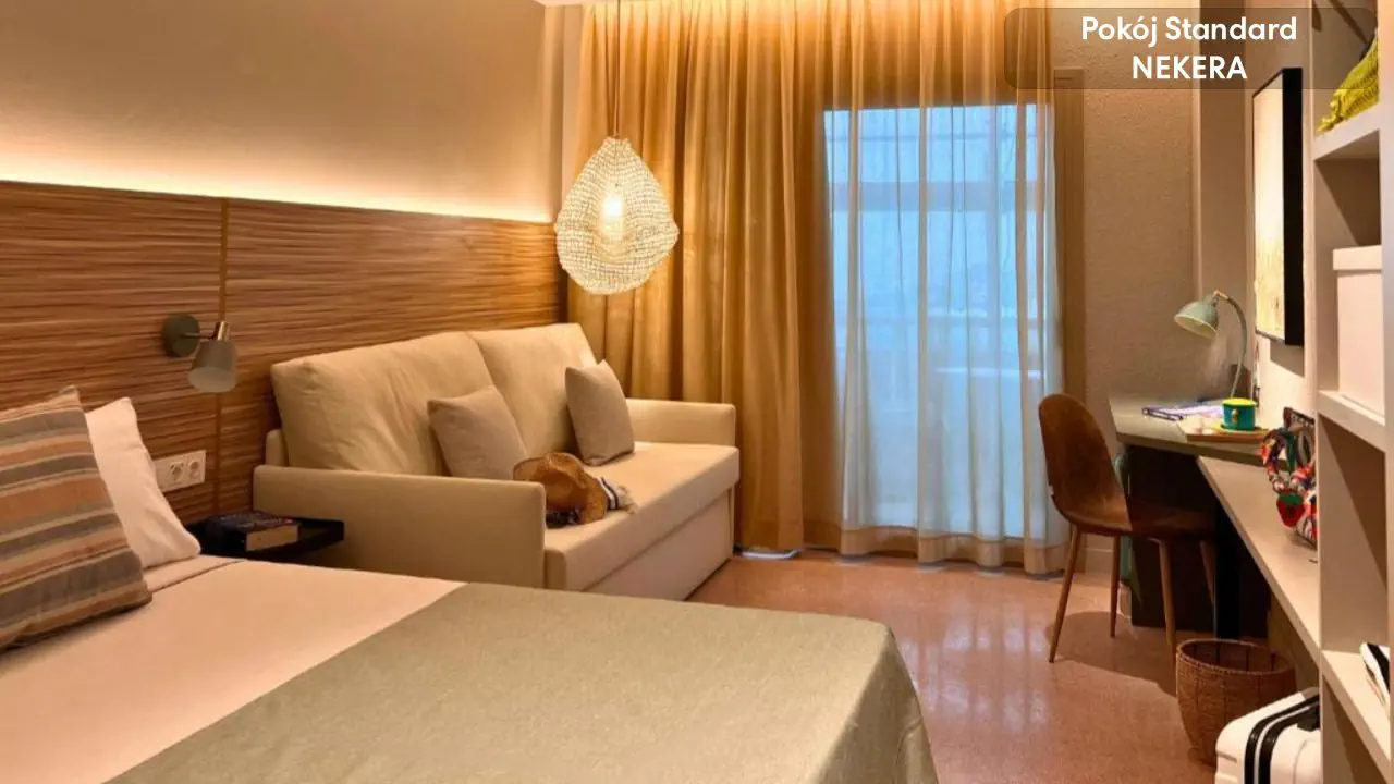 Noclegi, wyżywienie zgodnie z rezerwacją, telefoniczną opiekę rezydenta. Dodatkowo w przypadku imprez pakietowych z przelotem, oprócz ww. świadczeń w cenie zawarty jest: przelot, opłata lotniskowa, opłata za wylot z lotniska lokalnego, transfer lotnisko-hotel-lotnisko (chyba, że dana oferta stanowi inaczej), ubezpieczenie dla imprez turystycznych, bezpośrednia opieka polskojęzycznego rezydenta - w sezonie letnim (wakacyjnym): Kreta, Rodos, Turcja (Riwiera), Majorka, Bułgaria, całorocznie: Malta, na pozostałych kierunkach opieka telefoniczna lub przez czat w serwisie moja.nekera.pl. W przypadku imprez turystycznych opartych o przeloty przewóz bagażu może być nieuwzględniony w cenie. Cena uzależniona jest m.in. od przewoźnika oraz terminu wyjazdu, należy ją zweryfikować podczas zakupu. Linie lotnicze, w których bagaż jest w cenie (20 kg bagaż główny oraz bagaż podręczny) - przeloty czarterowe: Enter Air, LOT (dla wylotów na Rodos), Sky Express, Holiday Europe, European Air Charter, Ryan Sun (dla wylotów na Rodos) oraz przeloty rejsowe: Sun Express, Corendon, Pegasus Airlines, Emirates, Fly Dubai, Quatar Airlines, Air France, Austrian Airlines.Przykładowe linie lotnicze, gdzie bagaż jest dodatkowo płatny to: FR (Ryanair), W6 (WizzAir), Easy Jet. Podane godziny serwowania posiłków oraz funkcjonowania poszczególnych elementów infrastruktury hotelowej mogą ulec nieznacznym zmianom, ze względu na sezonowość, siły wyższe i inne okoliczności.
