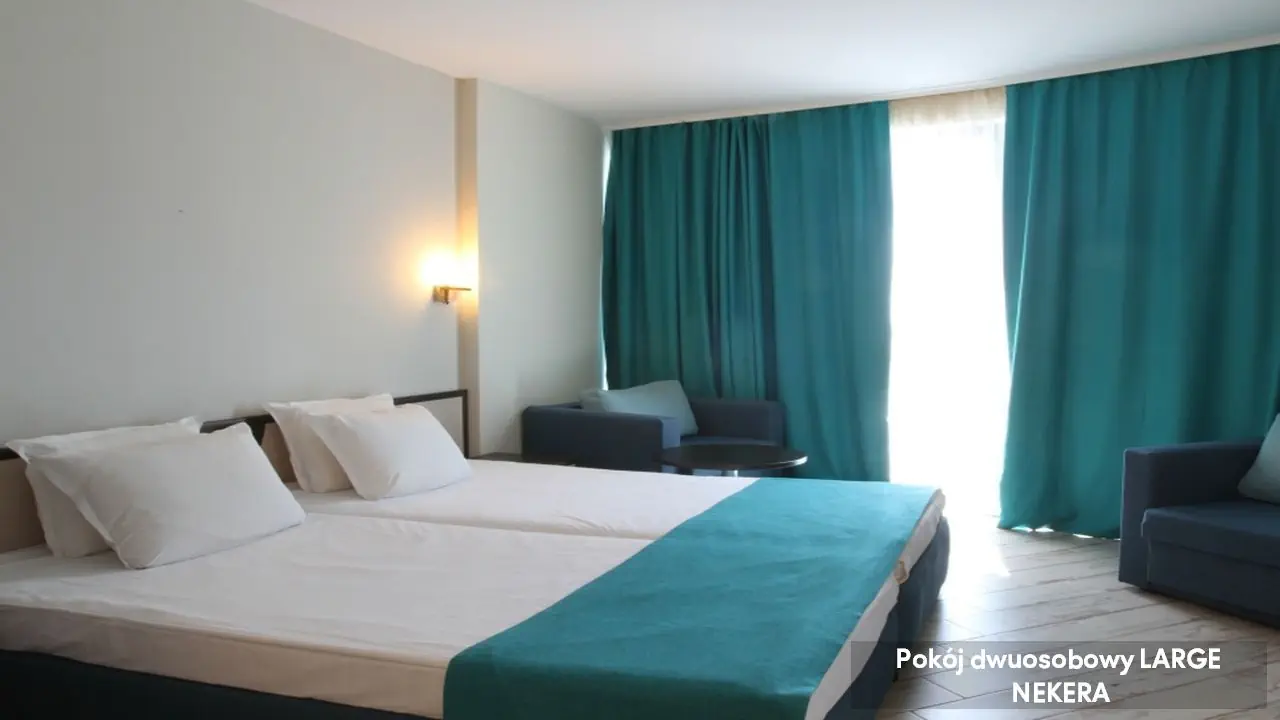 Noclegi, wyżywienie zgodnie z rezerwacją. Dodatkowo w przypadku imprez pakietowych z przelotem, oprócz ww. świadczeń, w cenie zawarty jest: przelot, opłata lotniskowa, opłata za wylot z lotniska lokalnego, transfer lotnisko-hotel-lotnisko (chyba, że dana oferta stanowi inaczej), ubezpieczenie dla imprez turystycznych, opieka telefoniczna lub przez czat w serwisie moja.nekera.pl. W przypadku imprez turystycznych opartych o przeloty, przewóz bagażu może być nieuwzględniony w cenie. Cena uzależniona jest m.in. od przewoźnika oraz terminu wyjazdu, należy ją zweryfikować podczas zakupu. Podane godziny serwowania posiłków oraz funkcjonowania poszczególnych elementów infrastruktury hotelowej mogą ulec zmianom, ze względu na sezonowość, siły wyższe i inne okoliczności.