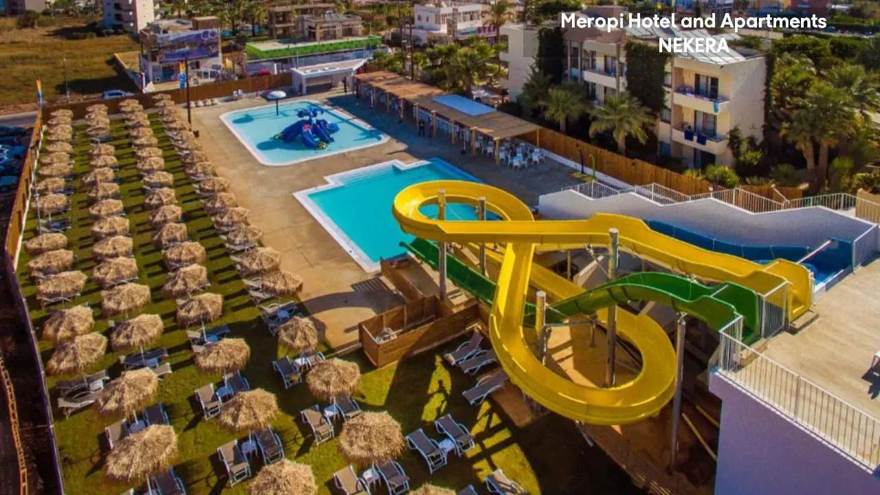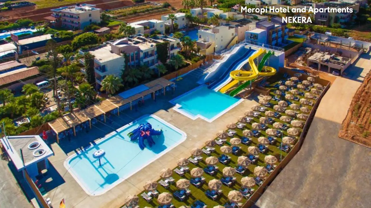 Meropi Hotel and Apartments to przyjazny, rodzinny kompleks położony w tętniącej życiem miejscowości, zaledwie kilka kroków od piaszczystej plaży. Komfortowe apartamenty i studia zapewniają swobodę wypoczynku, a rozbudowana strefa basenowa sprzyja relaksowi w śródziemnomorskim słońcu. Kameralna atmosfera i gościnność sprawiają, że zarówno pary, jak i rodziny z dziećmi czują się tu wyjątkowo swobodnie. To doskonała propozycja dla tych, którzy chcą połączyć błogi odpoczynek z bliskością lokalnych atrakcji i nocnego życia Krety.