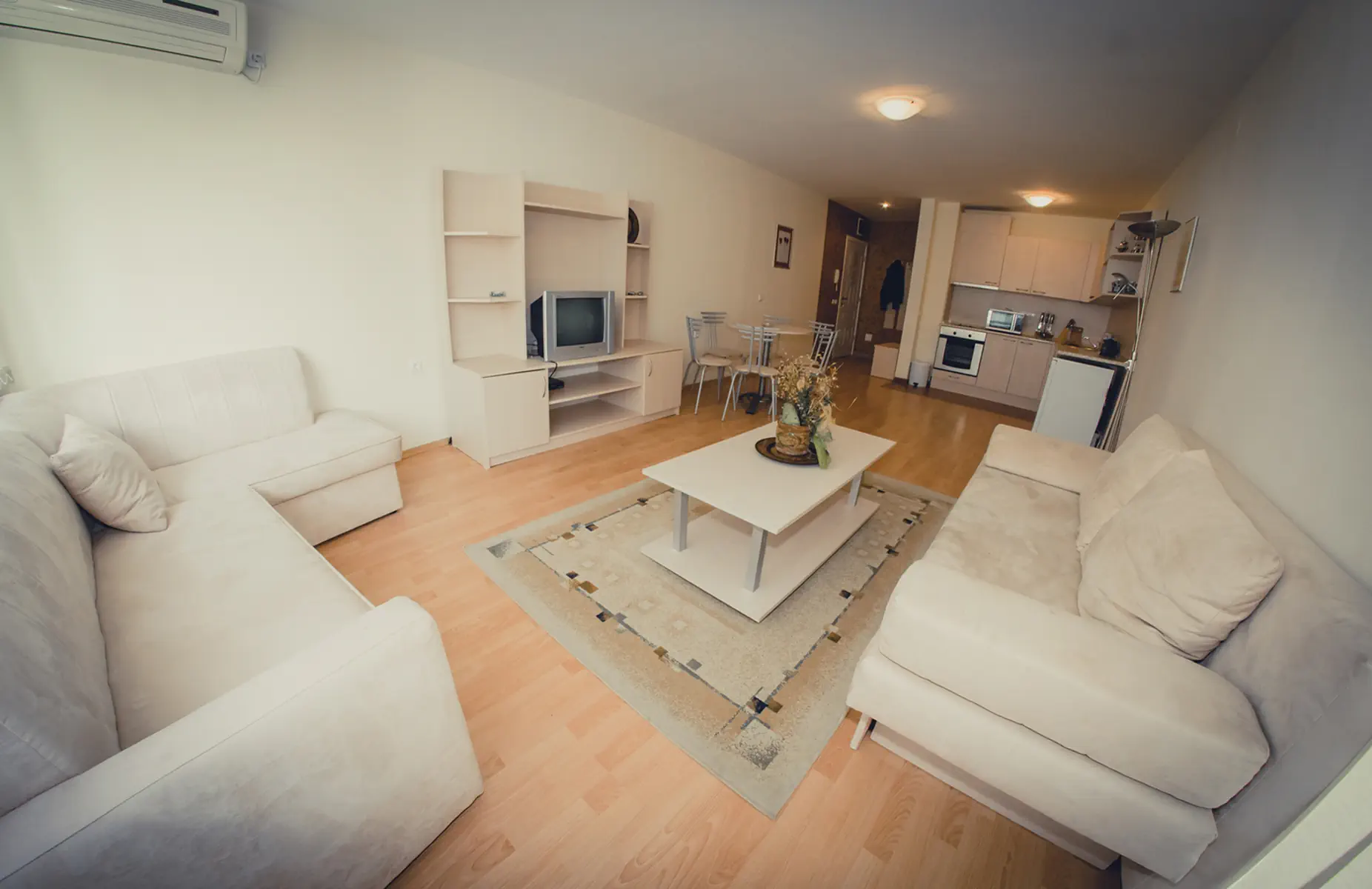 Dla max. 4 osób, Przestrzeń zewnętrzna: Balkon lub taras, Aneks kuchenny, prysznic, Powierzchnia pokoju: ok. 25 m2, Dostawka: sofa, Rodzaj podłogi: laminat, Sprzątanie raz na tydzień, 1 sypialnia, Maksymalna liczba osób dorosłych: 2, Maksymalna liczba dzieci: 2, Widok niesprecyzowany , Liczba łazienek: 1, Liczba toalet: 1, Klimatyzacja: Klimatyzacja centralna, Działa w godzinach: 10:00-20:00Lipiec, Sierpień