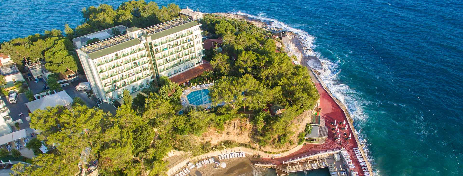 Położenie: Hotel położony w sąsiedztwie bujnego lasu, ok. 3,5 km od kurortu turystycznego Avsallar z szerokim wyborem sklepów. Do Alanyi ok. 27 km, do lotniska w Antalyi ok. 100 km. Hotel wyremontowany w 2016 roku. Plaża: Piaszczysta plaża zlokalizowana jest bezpośrednio przy hotelu (zejście po schodach), do dyspozycji gości także tarasy słoneczne przy plaży. Leżaki i parasole dostępne bezpłatnie, ręczniki kąpielowe za dodatkową opłatą (ok. 10 EUR/ręcznik). Do dyspozycji gości: Recepcja 24h, 2 windy, restauracja główna, 3 bary (lobby, przy basenie, na plaży), basen (leżaki i parasole przy basenie dostępne bezpłatnie, ręczniki kąpielowe za dodatkową opłatą), brodzik dla dzieci. Płatne dodatkowo: szisza, pralnia, sklep, fryzjer, fotograf, wypożyczalnia samochodów, lekarz. Wyżywienie: All inclusive: śniadania (07:30-09:30), lunche (12:30-14:00) i obiadokolacje (19:00-21:00) w formie bufetu w restauracji głównej. Ponadto przekąski w restauracji głównej (15:00– 16:00) oraz nocne posiłki w restauracji głównej (24:00-01:00). Napoje bezalkoholowe i lokalne alkohole dostępne w barze w lobby (10:00-18:00), barze przy basenie (10:00-23:00) i barze na plaży (10:00-17:00). Dodatkowo płatne: świeżo wyciskane soki, szampan, alkohole importowane, napoje butelkowane, kawa po turecku, lody. Program sportowy i animacyjny: Hotel organizuje dzienne i wieczorne animacje w wersji soft dla dzieci i dorosłych. Ponadto: Zabawy przy basenie, aerobic w wodzie, rzutki, sauna, hammam, centrum fitness (aktualnie nie czynne z powodu Covid), TV room, Miniklub dla dzieci w wieku 4-10 lat (w godz. 10:00-12:00 oraz 14:00-17:00). Dodatkowo płatne: skutery wodne, parasailing, narty wodne, rowery wodny, klub nurkowy, Centrum SPA Internet: Bezpłatny Internet Wi-Fi w pokojach oraz w częściach ogólnodostępnych hotelu. Kategoria lokalna: **** Strona www: www.miarosaincekumwest.com Naszym zdaniem: Przytulny hotel którego największą zaletą jest położenie na wzniesieniu, dzięki czemu oko cieszyć będą niezapomniane widoki. Hotel chwalony za czystość i miłą atmosferę. Polecamy gościom pragnącym odpocząć w spokoju wśród zieleni.