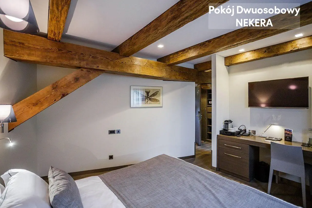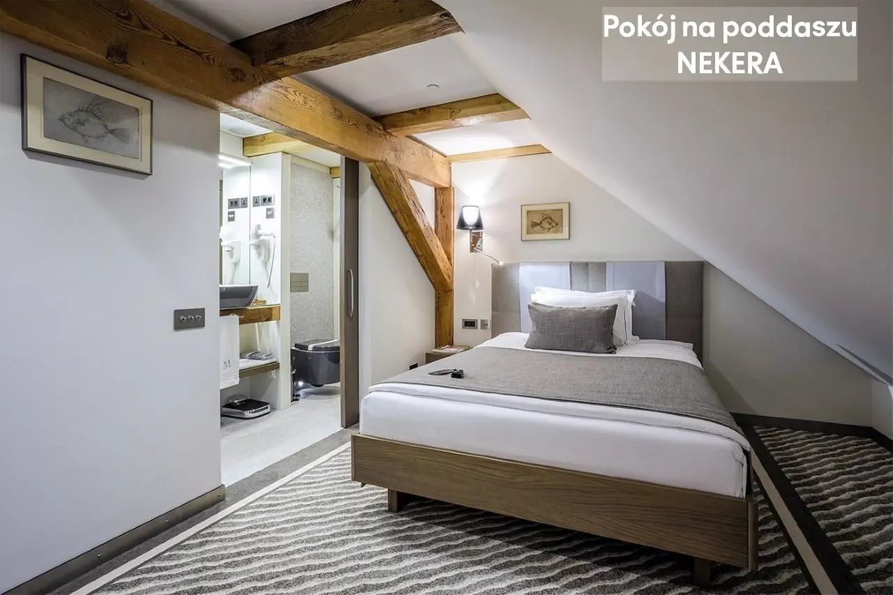 Pokój dwuosobowy na poddaszu: ok. 18 m2, mogący zakwaterować do dwóch osób, jedno łóżko podwójne, TV, Wi-Fi, sejf, minibar (za opłatą), biurko, ekspres do kawy, prywatna łazienka (prysznic, toaleta, umywalka, suszarka do włosów, szlafrok). Pokój dwuosobowy Standard: ok. 25 m2, mogący zakwaterować dwóch osób, jedno łóżko podwójne, pokój większy; poza tym wyposażony jak pokój dwuosobowy na poddaszu.