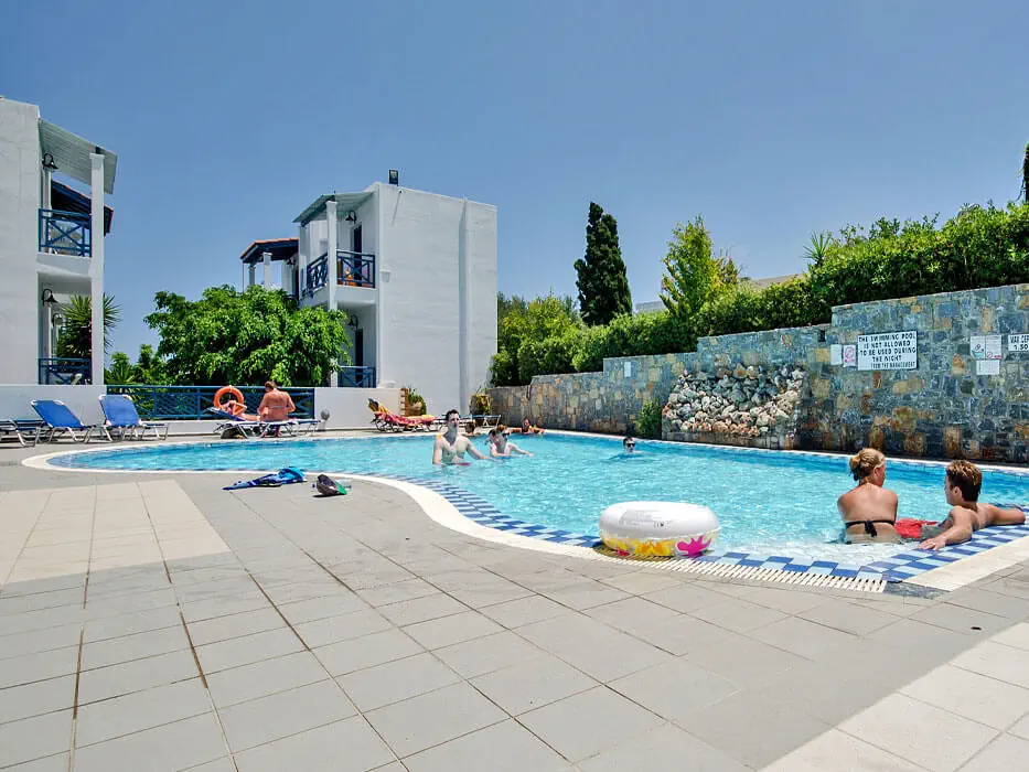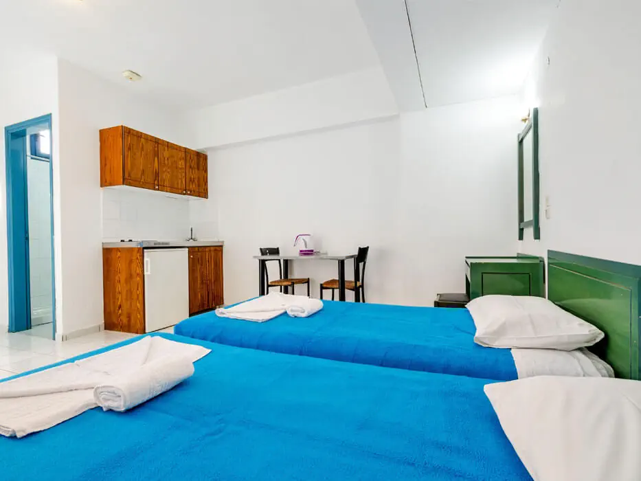 Zlokalizowane są w 8 budynkach (liczba pięter: 2, liczba wind: 0) Typy pokoi: - studio dla max. 2 os.: 1 sypialnia, klimatyzacja indywidualna (płatna), sejf (płatny), aneks kuchenny, łazienka (prysznic, WC), balkon lub taras - apartmenty dla max. 4 os.: 1 sypialnia, klimatyzacja indywidualna (płatna), sejf (płatny), aneks kuchenny, łazienka (prysznic, WC), balkon lub taras
