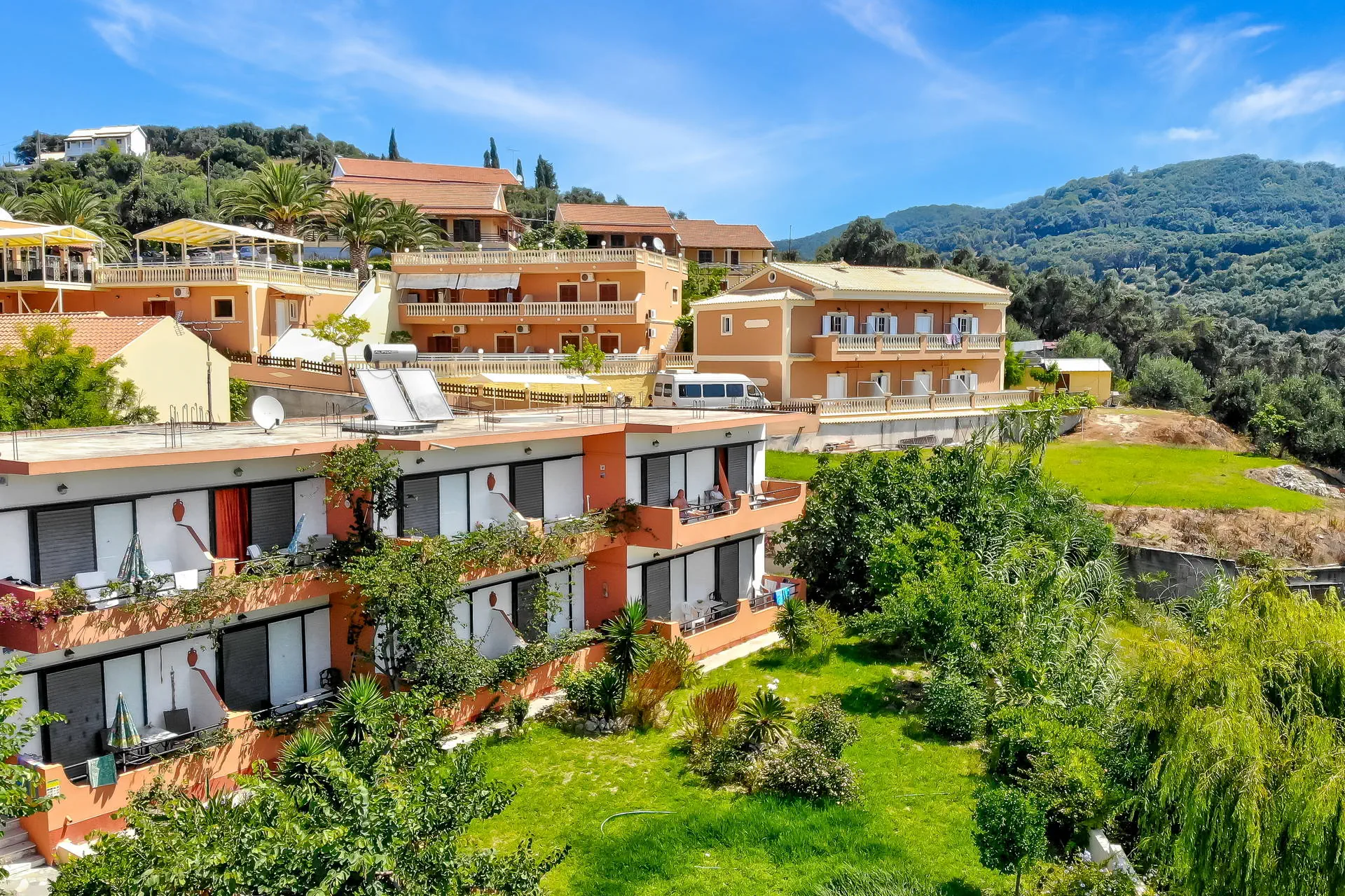 Do dyspozycji gości 1 basen ze słodką wodą dla dorosłych, brodzik dla dzieci, dostęp do basenu po złożeniu zamówienia w barze przy basenie. Panoramiczny widok na morze z basenu. Bar przy basenie. Internet Wi-Fi dostępne w altanie przy bramie głównej. Kategoria lokalna 3 klucze Naszym zdaniem Położony wśród zieleni hotel oferuje schludne i dobrze utrzymane zakwaterowanie, które zapewnia spokojny wypoczynek. Właściciele dbają o Gości, tworząc przyjazną atmosferę. W pobliżu znajduje się długa, piaszczysta plaża Agios Stefanos, uznawana za jedną z najpiękniejszych na wyspie, z łagodnym zejściem do morza i możliwością uprawiania sportów wodnych. Okolica jest spokojna, z dala od zgiełku większych kurortów, a jednocześnie oferuje dostęp do sklepów, tawern i barów. Dodatkowym atutem jest możliwość korzystania z basenu i tarasu słonecznego w pobliskim aparthotelu po złożeniu zamówienia w barze. Plaża Odległość plaży od hotelu: ok. 450 m od apartamentów. Dojście do plaży po schodach. Plaża jest szeroka i piaszczysta. Leżaki i parasole dodatkowo płatne. Pokoje Obiekt oferuje funkcjonalnie urządzone pokoje rozlokowane w kameralnym, 2-kondygnacyjnym budynku. Wszystkie z łazienką, klimatyzacją (płatna 7,5 ok. Eur/dzień), TV-sat, aneksem kuchennym (lodówka, kuchenka, zlewozmywak, naczynia, sztućce), balkonem lub tarasem (meble ogrodowe). Położenie Do lotniska jest ok. 40 km, transfer trwa ok. godzinę.Do niewielkiego centrum, gdzie znajduje się kilka tawern, sklepów i barów, jest około 350 m. Znany kurort Sidari oddalony jest o około 8 km. Najbliższy minimarket znajduje się około 250 m od apartamentów. Przystanek autobusu lokalnej komunikacji znajduje się około 250 m od miejsca zakwaterowania. Apartamenty położone są w północno-zachodniej części wyspy, w spokojnej miejscowości Agios Stefanos. Program sportowy i animacyjny Za dodatkową opłatą: sporty wodne na plaży. Pozostałe informacje: najbliższe rozrywki w centrum Agios Stefanos. Wyżywienie Pozostałe informacje: We własnym zakresie (w odległości 200 m od Mikelis znajduje się tawerna Spiros & Maria znana z bardzo dobrej kuchni). Zakwaterowanie