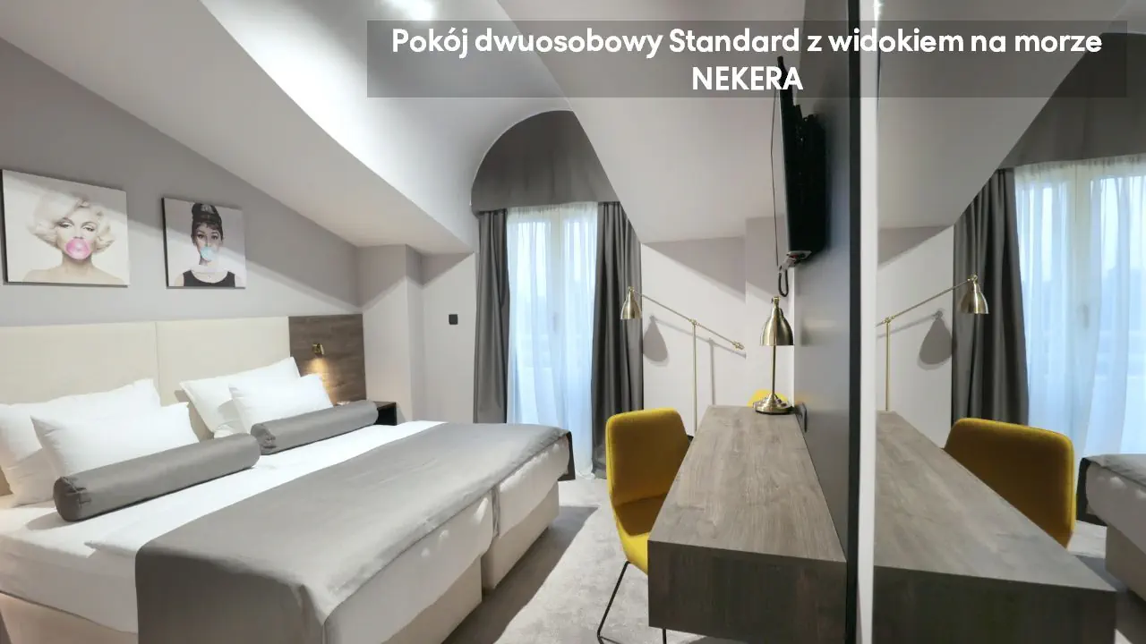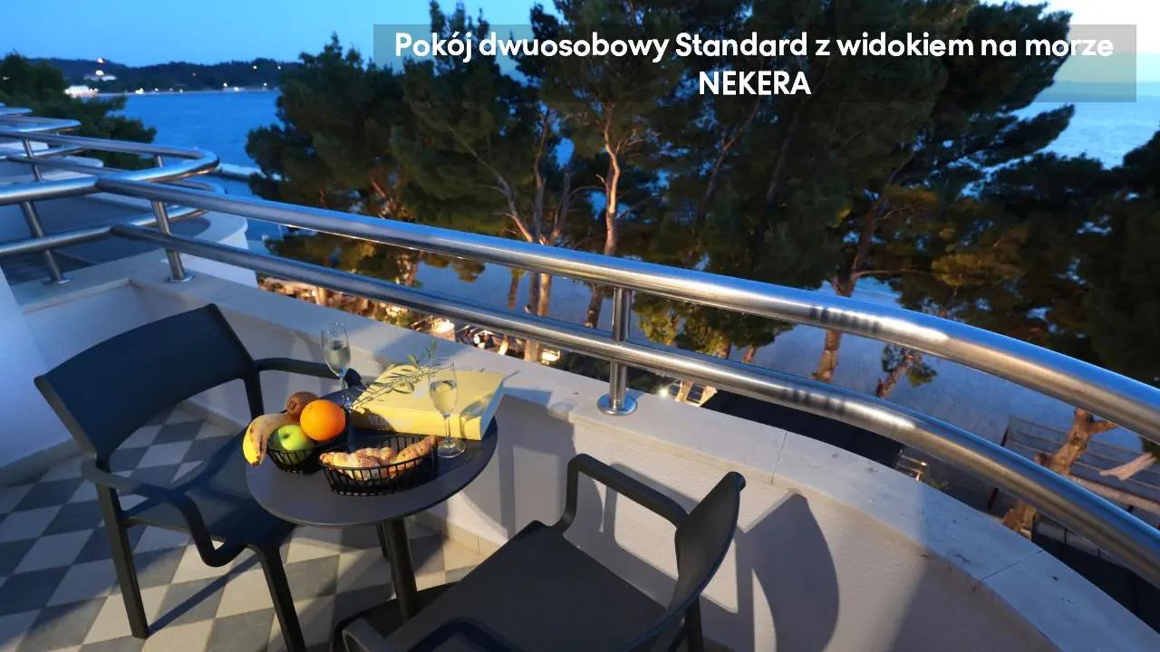 Pokój dwuosobowy z widokiem na park: ok. 21 m2, mogący zakwaterować do dwóch osób, jedno łóżko podwójne lub dwa łóżka pojedyncze, TV, sejf, klimatyzacja, minibar (za opłatą), prywatna łazienka (prysznic, toaleta, umywalka, suszarka do włosów), pokój bez balkonu, widok na Biokovo Nature Park. Pokój Standard z widokiem na morze: ok. 21 m2, mogący zakwaterować do dwóch osób, jedno łóżko podwójne, pokój z balkonem z widokiem na morze; poza tym wyposażony jak pokój dwuosobowy z widokiem na park. Pokój dwuosobowy Superior z widokiem na morze: ok. 21 m2, mogący zakwaterować do trzech osób, jedno łóżko podwójne i łóżko pojedyncze, balkon z widokiem na morze; poza tym wyposażony jak pokój dwuosobowy z widokiem na park.