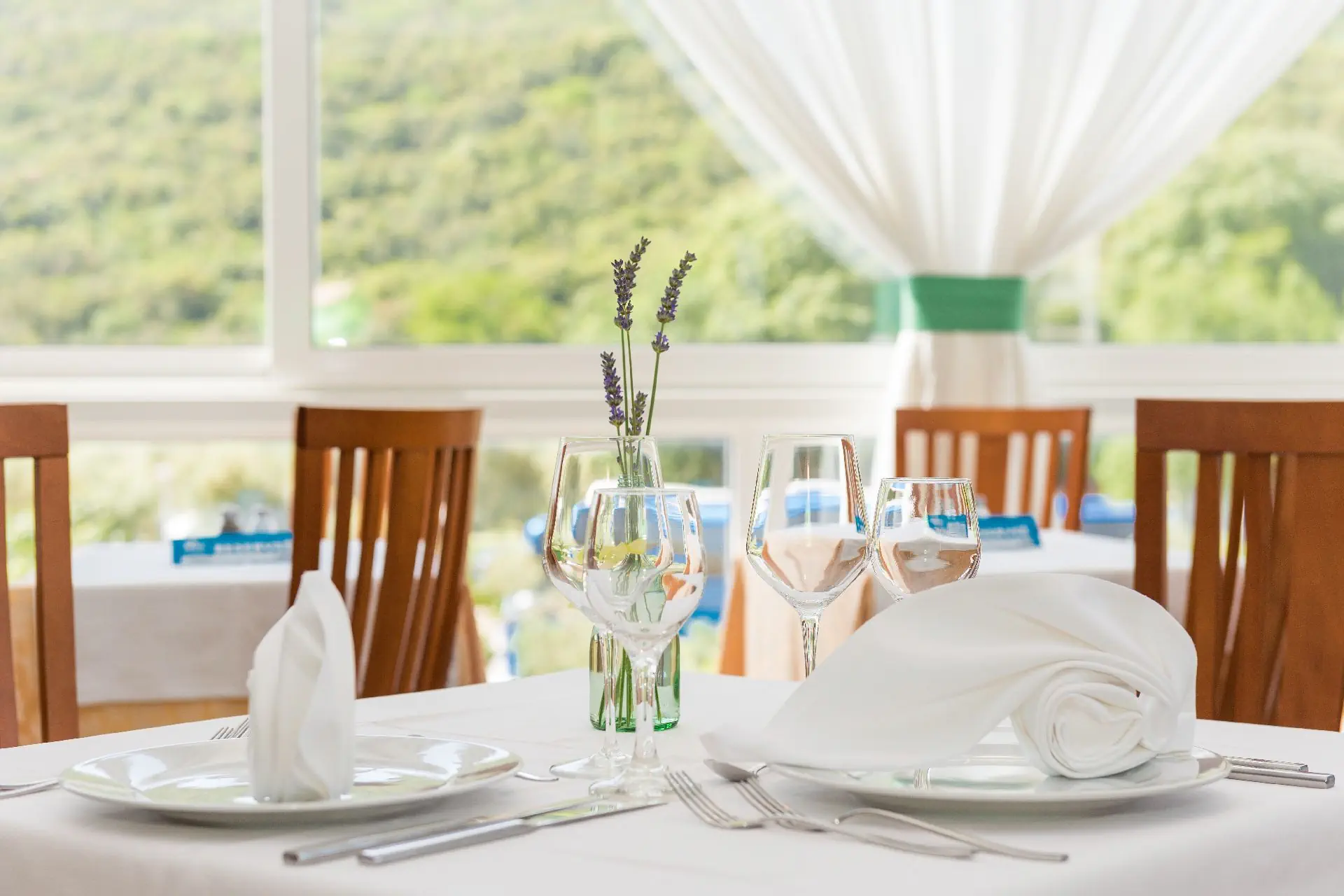 HALF BOARD+: śniadania (07:00-10:00) i obiadokolacje w formie bufetu (18:30-21:00) z nielimitowanymi napojami z dystrybutora podczas obiadokolacji (woda i soki). Możliwość redukcji wyżywienia do samych śniadań. *godziny oraz forma posiłków może ulec zmianie w trakcie sezonu
