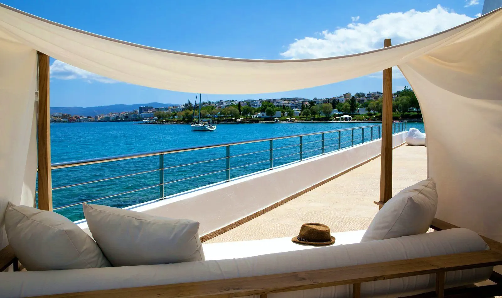 bezpośrednio przy zatoce ze skałami, platformami do opalania i małymi piaszczysto-żwirowymi plażami. Leżaki, parasole i ręczniki na plaży i przy basenie w cenie.