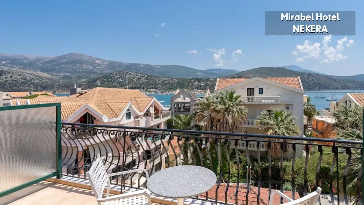 w Porto Skala, na południu wyspy. tawerny: ok. 1 km. Przystanek autobusowy: ok. 500 m, tawerna: ok. 650 m, wykopaliska starożytnej świątyni: ok. 300 m, ruiny antycznej rzymskiej willi w Skala: ok. 3 km, Wodospad Potisiti: ok. 6 km, stolica wyspy Argostoli: ok. 38 km, Jaskinia Drogati: ok. 35 km, Jezioro Melissani: ok. 38 km. Port lotniczy Argostoli oddalony o ok. 37 km.