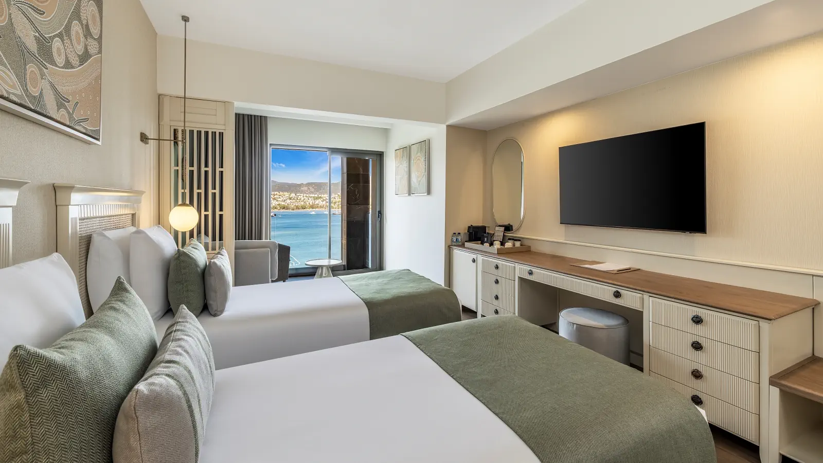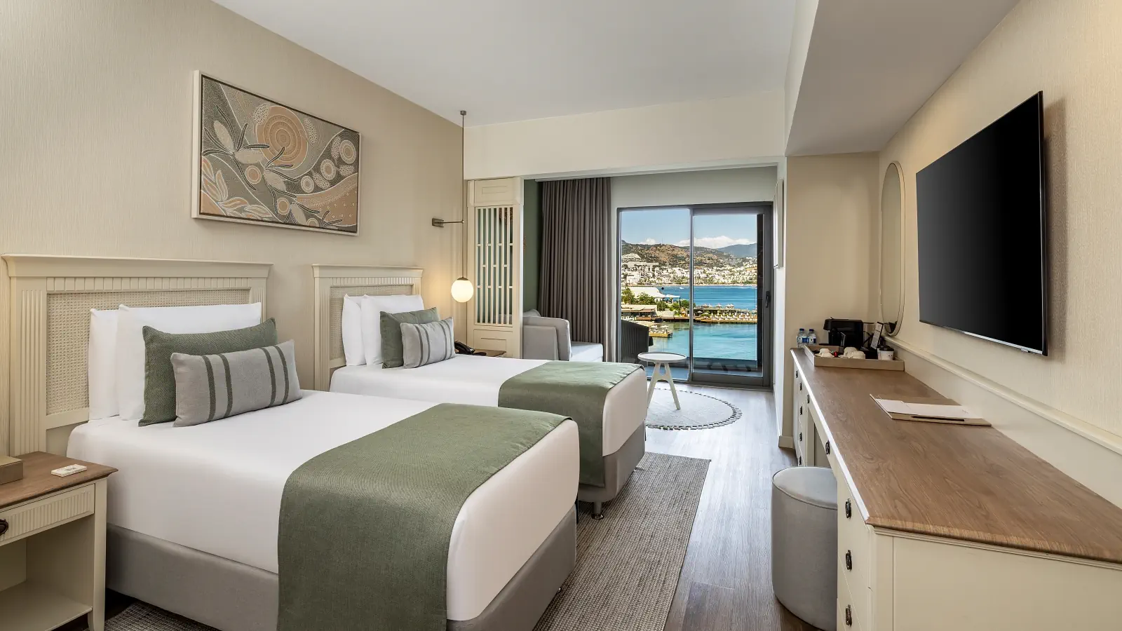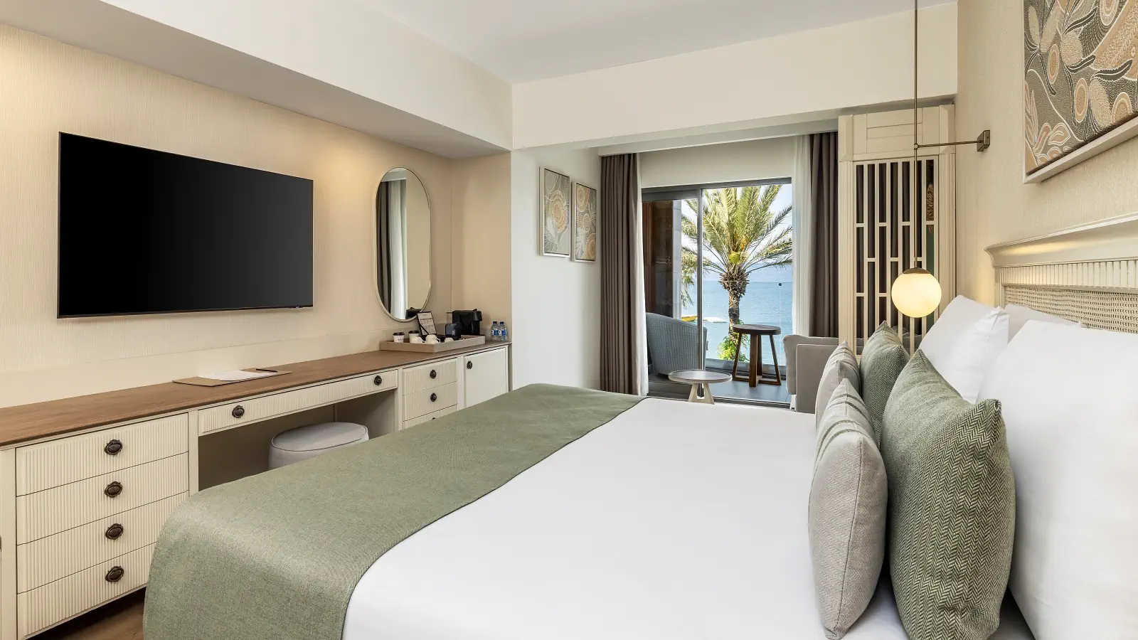 Dla max. 3 osób, Przestrzeń zewnętrzna: Balkon, Kanały telewizji: Angielski, Telefon w pokoju, prysznic, Powierzchnia pokoju: ok. 26 - 30 m2, Dostawka: łóżko rozkładane, Rodzaj podłogi: laminat, Sprzątanie cykliczne, 1 sypialnia, Maksymalna liczba osób dorosłych: 3, Maksymalna liczba dzieci: 2, Od strony morza,Widok na morze, Liczba łazienek: 1, Liczba toalet: 1, Zestaw do parzenia kawy i herbaty, Klimatyzacja: Klimatyzacja centralna, Działa w godzinach: 24hMaj, Czerwiec, Lipiec, Sierpień, Wrzesień, Październik