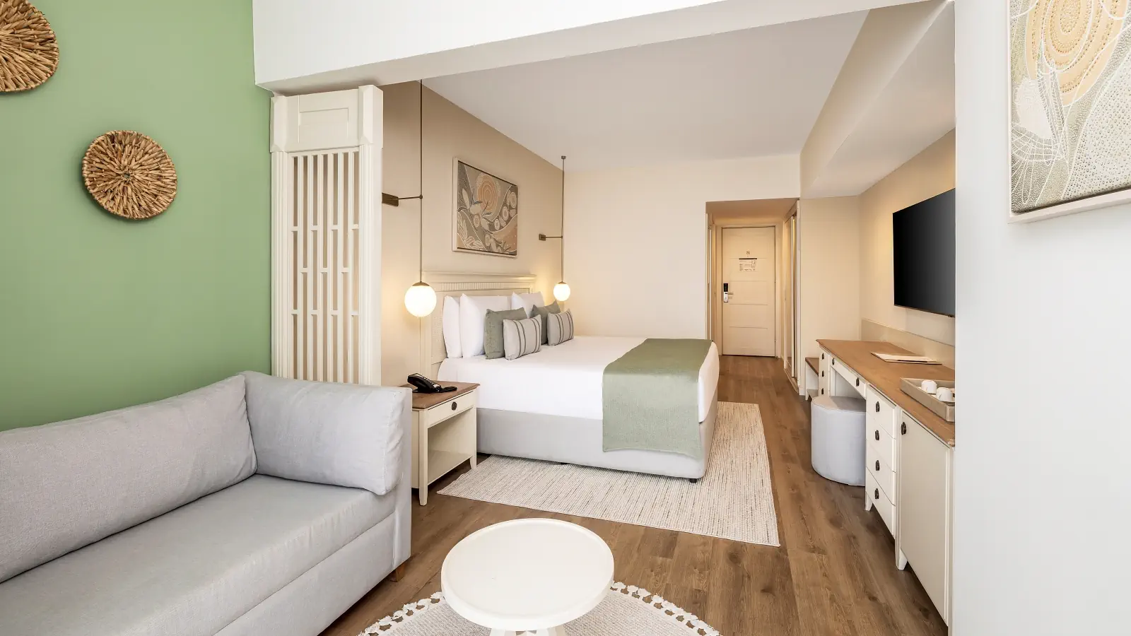 Dla max. 5 osób, Przestrzeń zewnętrzna: Balkon, Kanały telewizji: Angielski, Telefon w pokoju, prysznic, Powierzchnia pokoju: ok. 65 m2, Dostawka: łóżko rozkładane, Rodzaj podłogi: płytki, Sprzątanie codziennie, 2 sypialnie, Drzwi łączące między pokojami, Maksymalna liczba osób dorosłych: 5, Maksymalna liczba dzieci: 4, Widok na ogród, Liczba łazienek: 2, Liczba toalet: 2, Zestaw do parzenia kawy i herbaty, Klimatyzacja: Klimatyzacja centralna, Działa w godzinach: 24hMaj, Czerwiec, Lipiec, Sierpień, Wrzesień, Październik