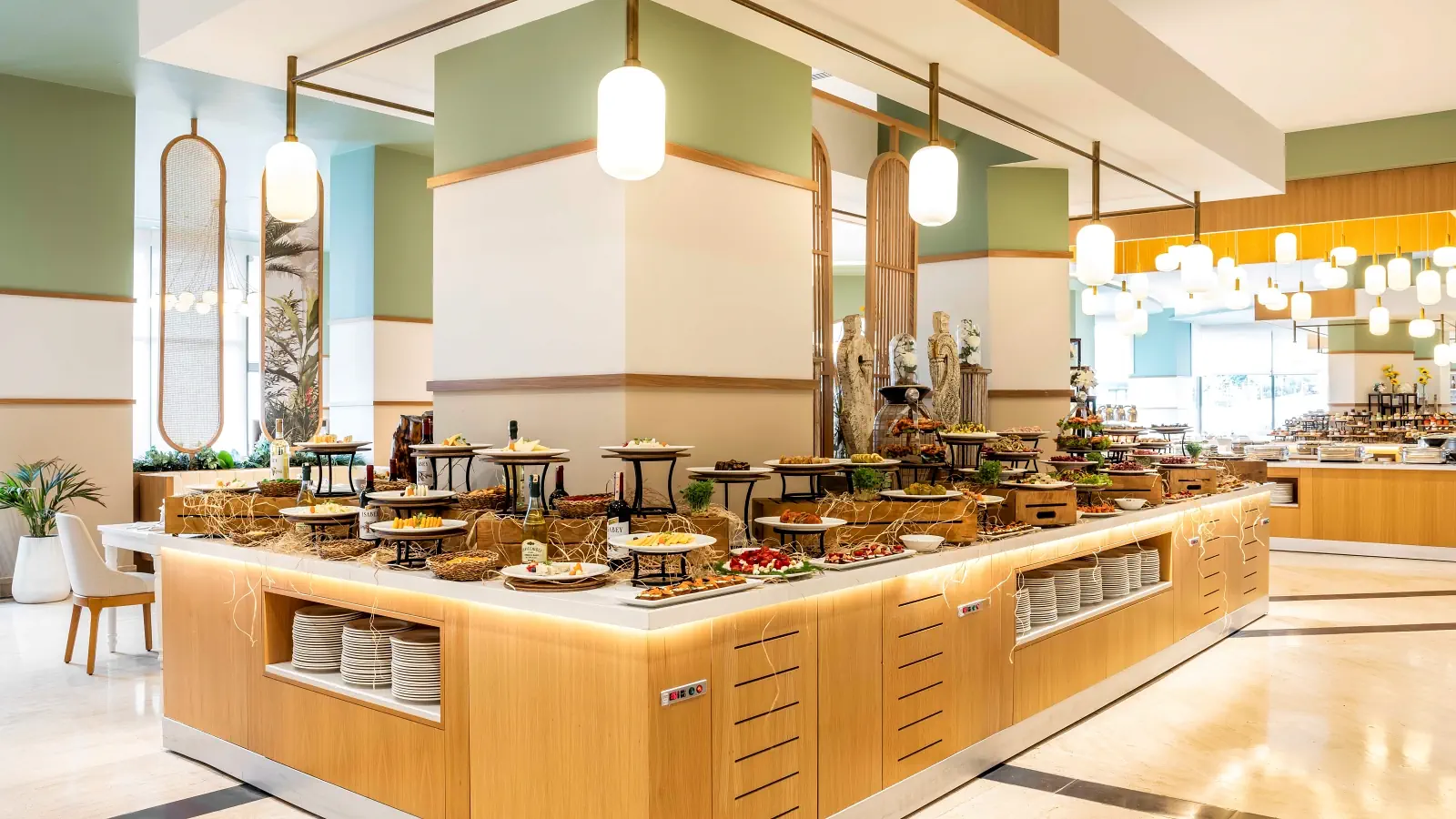Śniadanie (07:00 - 11:00) - Terrace Main Restaurant, stół szwedzki, Obiad (12:30 - 14:30) - Terrace Main Restaurant, stół szwedzki, Przekąski (12:00 - 17:00) - Snack Restaurant, określone menu, Podwieczorek (15:00 - 20:00) - Looby Tea Lounge, stół szwedzki, Kolacja (19:00 - 21:30) - Terrace Main Restaurant, stół szwedzki, Późna kolacja (00:00 - 02:00) - Terrace Main Restaurant, określone menu, Pepper A La Carte Restaurant (19:30 - 22:30) (19:30 - 22:30), raz w tygodniu, Kuchnia: lokalna, Wymagana rezerwacja: Tak ¹⁾, Sirtaki A La Carte Restaurant (19:30 - 22:30) (19:30 - 22:30), raz w tygodniu, Kuchnia: Grecka, lokalna, Wymagana rezerwacja: Tak ¹⁾, Sunset A La Carte Restaurant (19:30 - 22:30) (19:30 - 22:30), raz podczas pobytu, Kuchnia: Włoska, Wymagana rezerwacja: Tak, Aqua Beach Bar (10:00 - 19:00), Napoje: alkohole lokalne, napoje bezalkoholowe (10:00 - 19:00), Egeo Pool Bar (10:00 - 19:00), Napoje: alkohole lokalne, napoje bezalkoholowe (10:00 - 19:00), Looby Tea Lounge (24h), Napoje: alkohole lokalne, napoje bezalkoholowe (24h), Cave Bar (23:00 - 02:00), Napoje: alkohole lokalne, napoje bezalkoholowe (23:00 - 02:00), Lounge +9 (19:00 - 01:00), Napoje: alkohole lokalne, napoje bezalkoholowe (19:00 - 01:00), napoje bezalkoholowe, alkohole lokalne, wybrane alkohole importowane, lody, pakiety dla nowożeńców, pakiety urodzinowe (na życzenie) ¹⁾, cukiernia, room service ¹⁾, Minibar w pokoju ¹⁾ - dodatkowo płatne