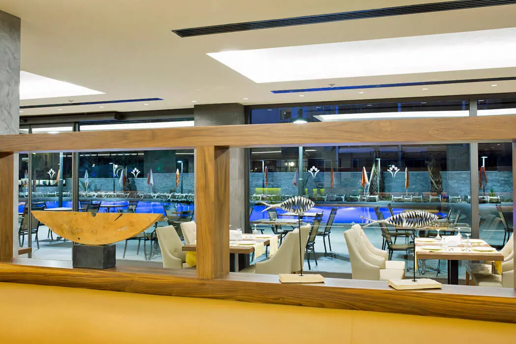 - restauracja główna, bary (3), cukiernia All Inclusive (10:00-00:00) - śniadanie (07:00-10:00), późne śniadanie (10:00-10:30), obiad (12:30-14:00), kolacja (19:00-21:00), późny posiłek (00:00-01:00) - przekąski (12:00-17:00), podwieczorek (17:00-18:00) w snack barze - lody - wybrane: napoje bezalkoholowe, lokalne napoje alkoholowe - pakiety dla nowożeńców (na życzenie)