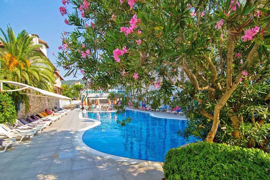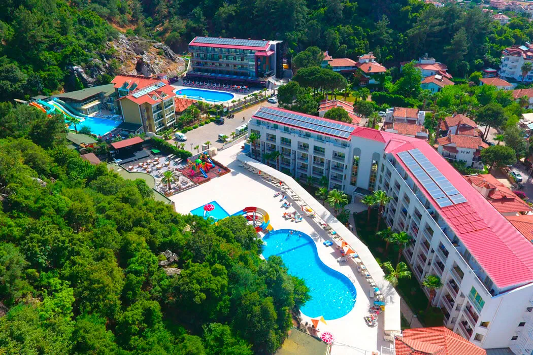 9 km od centrum Marmaris, 90 km od lotniska w Dalamanie-DLM. Hotel usytuowany na powierzchni: 10000 m2.