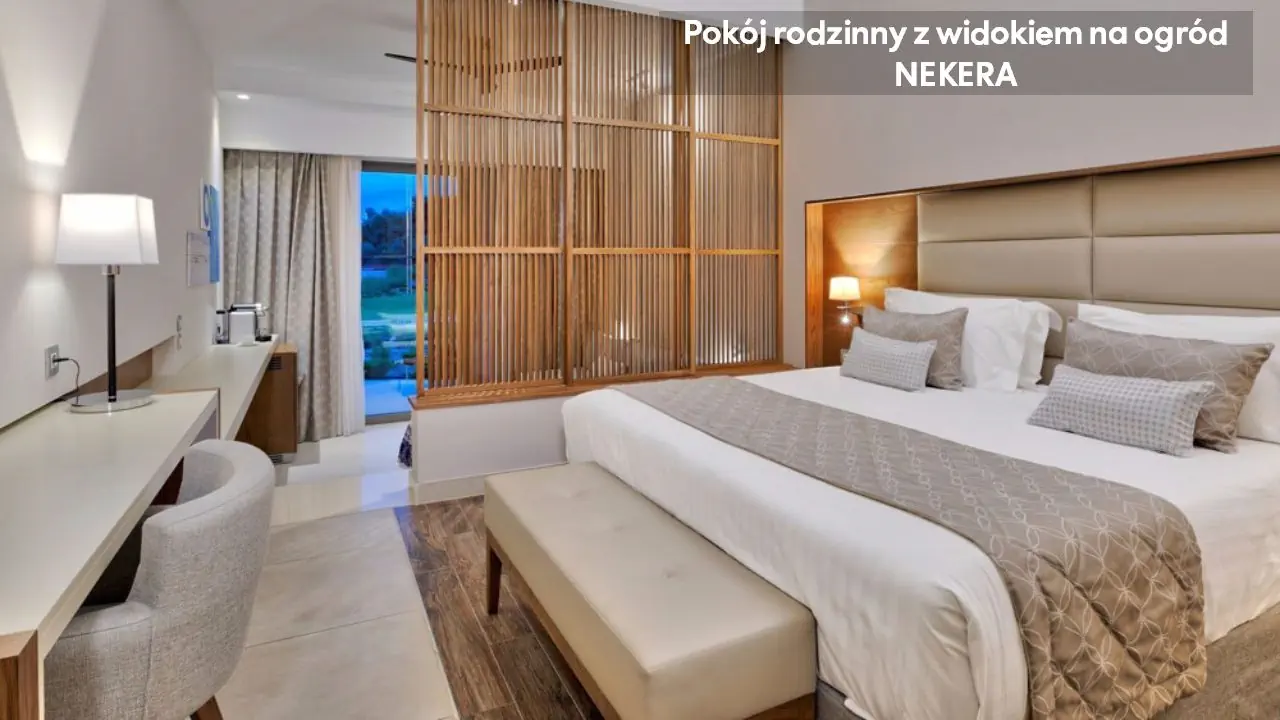 Noclegi, wyżywienie zgodnie z rezerwacją. Dodatkowo w przypadku imprez pakietowych z przelotem, oprócz ww. świadczeń w cenie zawarty jest: ubezpieczenie podstawowe (8000 EUR KL i 2000 EUR NNW) przelot, opłata lotniskowa, opłata za wylot z lotniska lokalnego, transfer lotnisko-hotel-lotnisko (chyba, że dana oferta stanowi inaczej jak np. zakup hotelu z dojazdem własnym). Podczas pobytu zapewniamy opiekę lokalnego przedstawiciela, a także kontakt telefoniczny lub poprzez czat (na portalu moja.nekera.pl) z polskojęzycznym rezydentem. Podane godziny serwowania posiłków oraz funkcjonowanie poszczególnych elementów infrastruktury hotelowej mogą ulec nieznacznym zmianom, ze względu na sezonowość, siły wyższe i inne okoliczności.