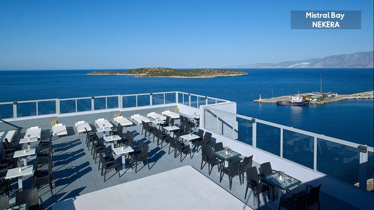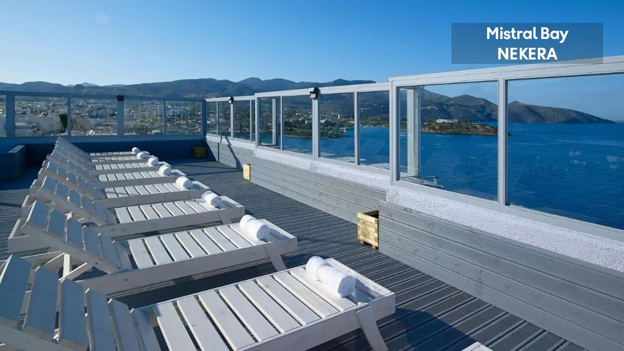 czterogwiazdkowy nowoczesny hotel oferuje 96 pokoi z pięknym widokiem na zatokę Mirabello w siedmiopiętrowym budynku. Do dyspozycji gości: 24h recepcja, winda, basen zewnętrzny, restauracja główna, bar na dachu, sala telewizyjna, przechowalnia bagażu. Za dodatkową opłatą: usługa prania/prasowania, faks/ksero, wymiana walut, sklep z pamiątkami.