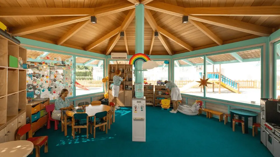 • basen dla dzieci ze słodką wodą• 2 zjeżdżalnie dla dzieci (dla najmłodszych dzieci wstęp dozwolony tylko pod opieką osoby dorosłej)• plac zabaw• mini klub (4-12 lat)• program animacyjny• krzesełka w restauracji, menu dla dzieci• kącik gier (odpłatnie)• podgrzewacz do butelek, wanienka (na zapytanie)• łóżeczka dla niemowląt (na zapytanie)• opiekunka dla dzieci (odpłatnie)Na sezon 2025:• Dzieci pobyt zniżka - 1. dziecko do 12 lat• Dzieci pobyt zniżka - 2. dziecko do 12 lat• Dzieci pobyt gratis - 1. dziecko do 12 lat (pokój rodzinny)• Dzieci pobyt gratis - 2. dziecko do 12 lat (pokój rodzinny)Na sezon 2026:• Dzieci pobyt zniżka - 1. dziecko do 12 lat• Dzieci pobyt zniżka - 2. dziecko do 12 lat