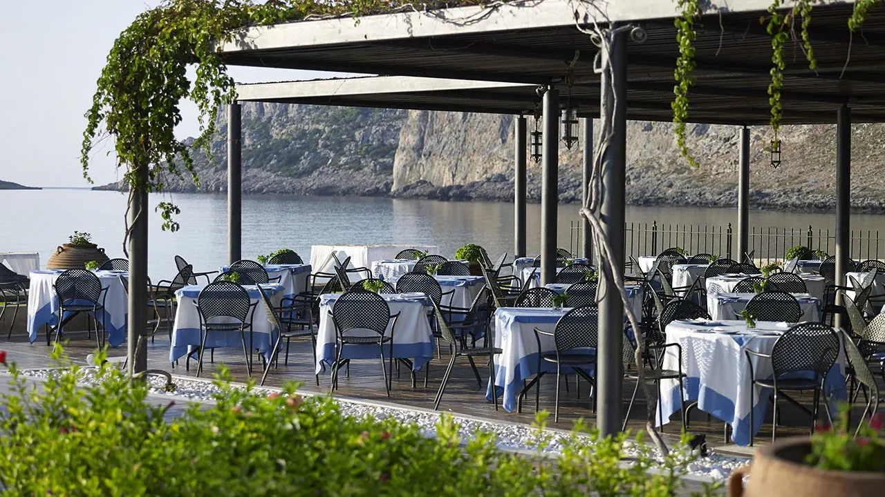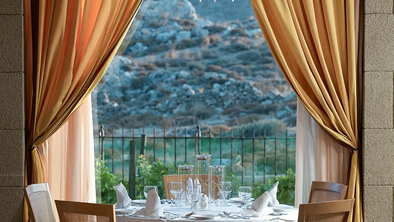 Śniadanie i obiadokolacje:• śniadania w formie bufetu• espresso i cappuccino serwowane do śniadań• wyciskany sok z pomarańczy do śniadań• certyfikowane śniadania greckie • obiadokolacje w formie bufetu i serwowane• 2 restauracje - główna Navarone i tawerna Lindia a la carte (odpłatnie)• 2 bary (w budynku głównym i przy basenie) - odpłatnie• diety: wegetariańska, bez glutenu, bez laktozy (przy zgłoszeniu podczas rezerwacji)• do kolacji strój formalny• okazjonalne wieczory tematyczne do kolacji