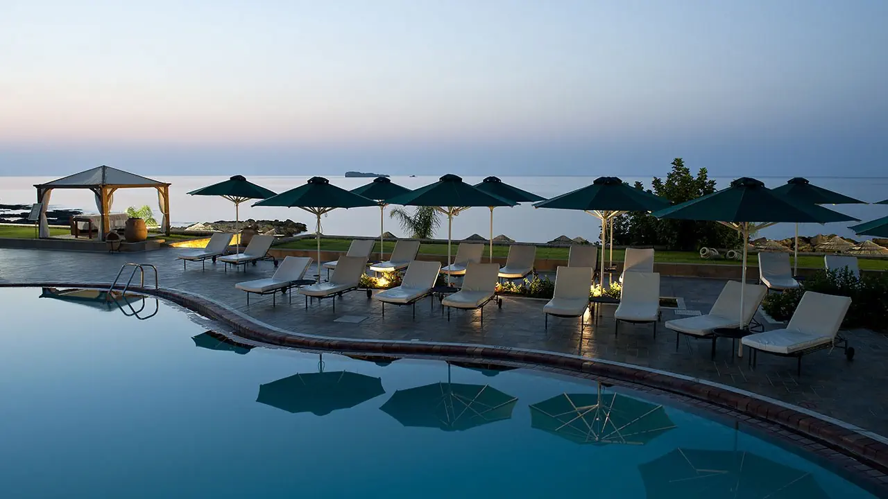 • 2 dwupiętrowe budynki• 2 restauracje - główna Navarone i tawerna Lindia a la carte (odpłatnie)• 2 bary (w budynku głównym i przy basenie)• Wi-Fi bezpłatnie)• minimarket, bankomat w lobby, parking• brak usprawnień dla osób o ograniczonej sprawności ruchowej • 70 pokoi, kategoria lokalna 5*• tylko dla dorosłych (16+)