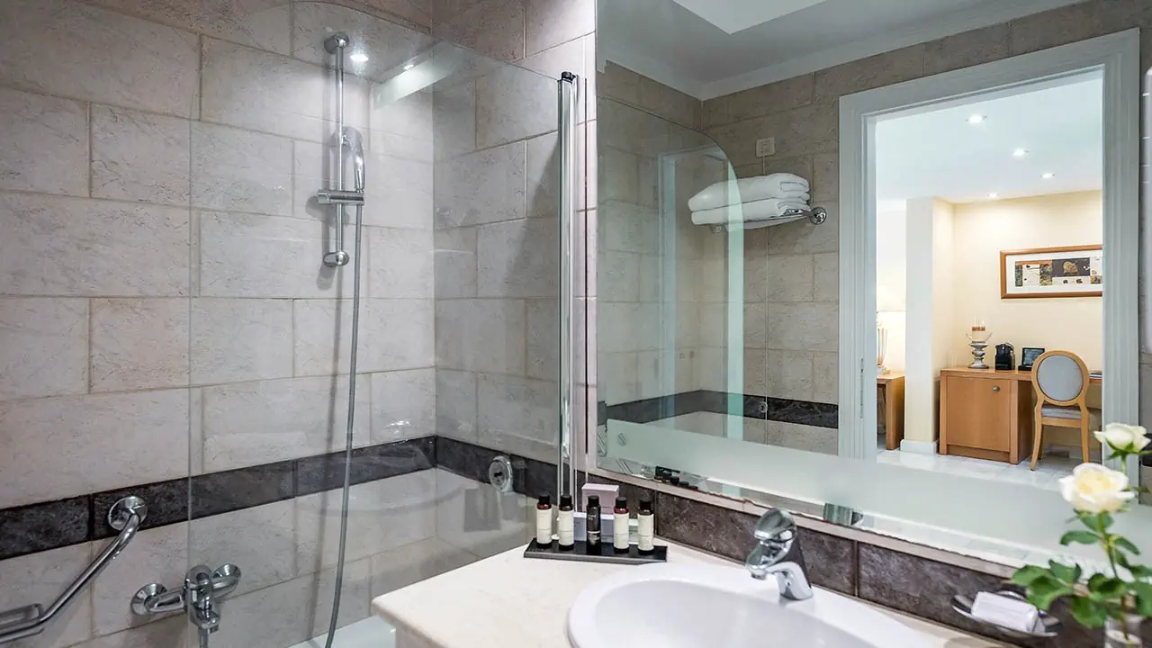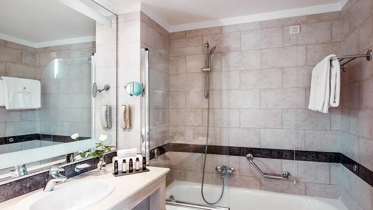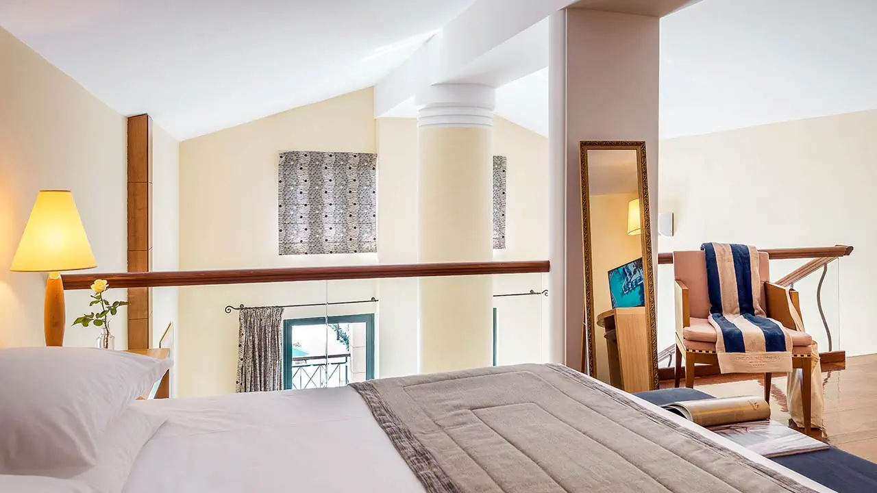 Standard boczny widok na morze:• 2-3 os. (ok. 20 m2), dostawka dla 3. osoby• klimatyzacja indywidualnie sterowana (bezpłatna)• TV-SAT, telefon, sejf (bezpłatny), Wi-Fi (bezpłatne)• łazienka z wanną lub prysznicem, suszarka• mini-kosmetyki, szlafrok i pantofle• zestaw do kawy i herbaty i automat Nespresso na kapsułki (bezpłatne)• minibar (płatny), balkon, boczny widok na morze• pokój standard widok na morze za dopłatą (ok. 26 m2, tylko z wanną)• pokój standard 1-os. za dopłatą (ok. 18 m2, brak bocznego widoku na morze)Maisonette boczny widok na morze:• 2-3 os. (ok. 45 m2), dostawka dla 3. osoby• pokój dzienny na parterze i sypialnia na 1 piętrze• łazienka z wanną na parterze• boczny widok na morze• wyposażony jak pokój standardSuite widok na morze:• 2-4 os. (ok. 65 m2), dostawka dla 3. i 4. osoby• pokój dzienny na parterze i sypialnia na 1 piętrze• dwa telewizory, 2 łazienki z wanną (na parterze i na 1 piętrze) • widok na morze, wyposażony jak pokój standard
