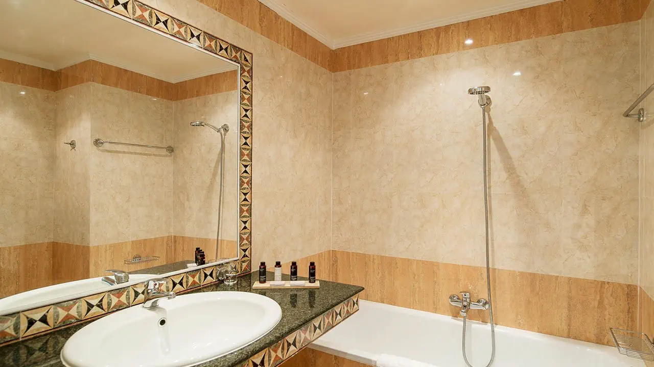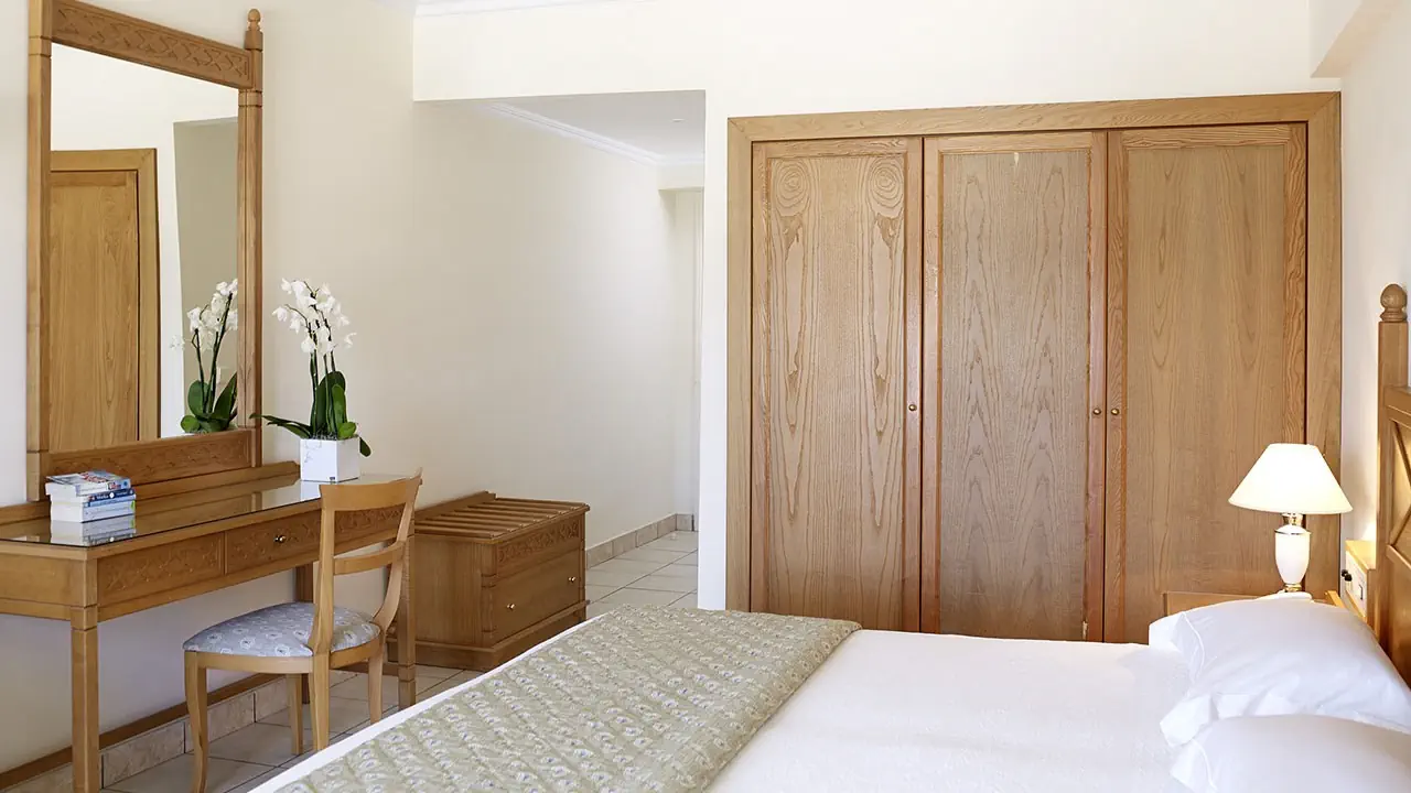 Standard• 2-4 os. (ok. 20 m2)• dostawka dla 3. i 4 os (max. 3 osoby dorosłe, lub 2 os. dorosłe i 2 dzieci)• klimatyzacja (bezpłatna), Wi-Fi (bezpłatne), zestaw do kawy/herbaty• minibar uzupełniany co drugi dzień (bezpłatny tylko w All Inclusive)• łazienka z wanną, mini-kosmetyki, szlafroki i pantofle• sejf (bezpłatny), balkon lub taras• pokój standard boczny widok morze za dopłatą• pokój 1-osobowy za dopłatą (ok. 16 m2)Standard promocyjny• 2-3 os. (ok. 19 m2), dostawka dla 3. osoby• wyposażany jak pokój standard• zlokalizowany na terenie całego hoteluSuite widok na morze• 2-3 os. (ok. 24 m2), dostawka dla 3. osoby• panoramiczny widok na morze• wyposażany jak pokój standard
