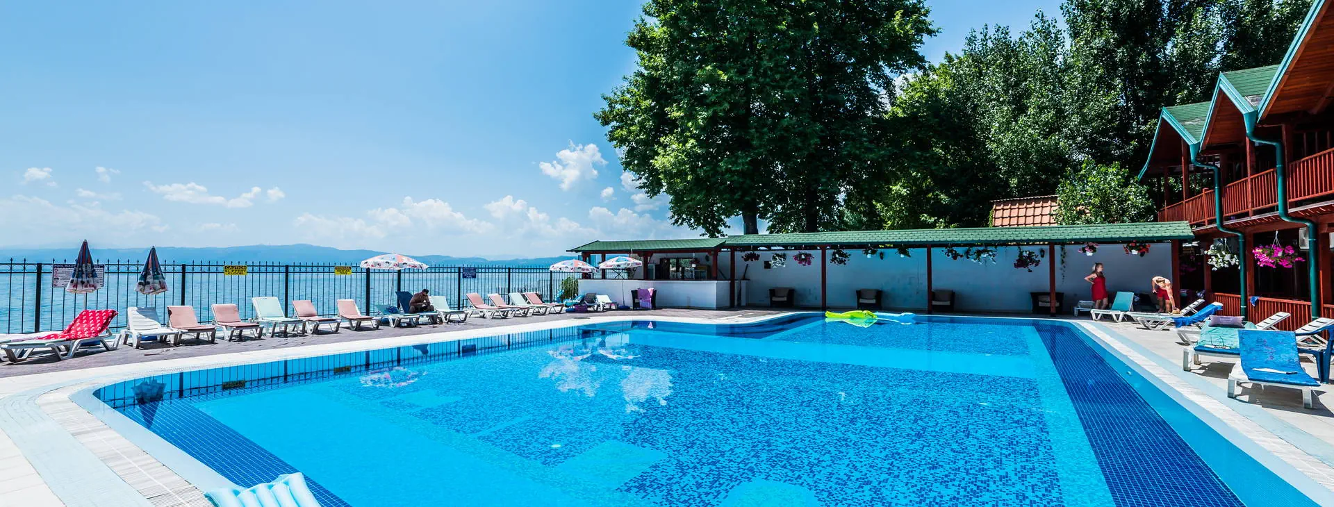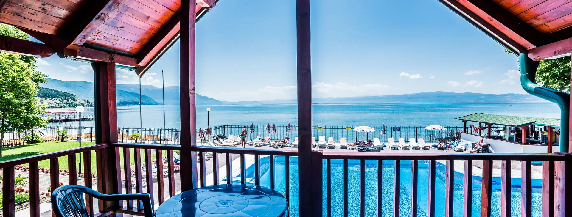 Położenie: Kompleks Mizo usytuowany jest przy plaży nad Jeziorem Ochrydzkim. Składa się z budynku głównego i willi - bungalowów – przypomina mini wioskę wakacyjną rozlokowaną na obszernym terenie. Do centrum Ochrydu tylko 1,5 km, do najbliższego lotniska ok. 9 km. Do Ochrydy warto wybrać się spacerem ścieżką wijącą się początkowo wzdłuż jeziora, a dalej prowadzącą na wzgórze Staromiejskie. Plaża: Hotel posiada własną żwirkową plażę (długość ok. 350 m) bezpośrednio przy obiekcie. Bezpłatne leżaki i parasole na plaży (brak ręczników plażowych). Do dyspozycji gości: Całodobowa recepcja w budynku głównym, bezpłatne sejfy przy recepcji, duży prostokątny basen (leżaki i parasole bezpłatne, brak ręczników plażowych), boiska do koszykówki i siatkówki. Ponadto w hotelu restauracja śniadaniowa i restauracja główna z tarasem z widokiem na jezioro i bar. Wyżywienie: Śniadania (07:30 - 09:30) w formie bufetu (napoje do śniadania wliczone w cenę), obiady (13:30 - 15:00) i kolacje (19:00 - 20:30) - wybór dań (spośród: zup, sałatek, 2 dań głównych i 2 deserów) oraz 2 napoje w ciągu dnia (lokalne alkoholowe -piwo, uzo, rakija, wino lub bezalkoholowe - woda, kawa, herbata, napoje). Hotel zastrzega sobie prawo do zmiany zakresu usług objętych formułą Full Board Plus (np. godzin serwowania posiłków). Program sportowy i animacyjny: Hotel nie prowadzi animacji. Internet: Bezpłatnie w całym hotelu, również w pokojach (o ograniczonym zasięgu). Kategoria lokalna: **** Strona www:
