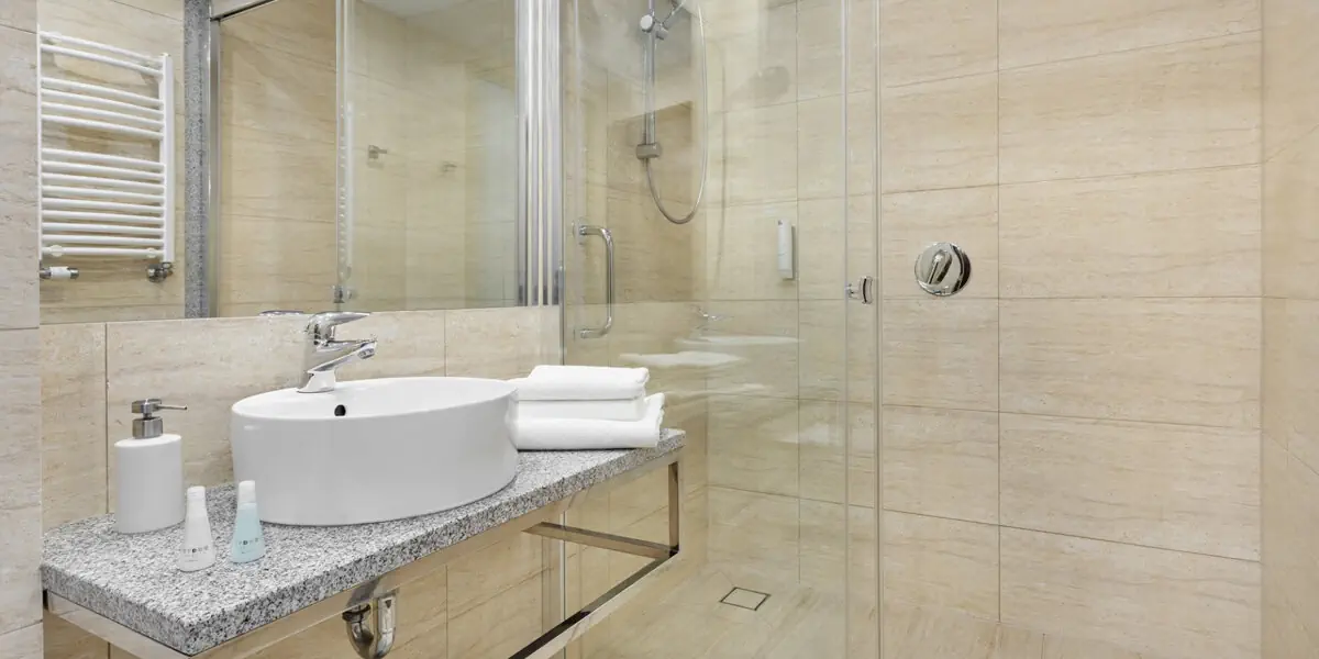 Klimatyzowany pokój z łazienką, ekspresem do kawy, wifi, TV LED, smart TV, mini lodówką, żelazkiem i deską do prasowania, a także sejf o podwyższonym bezpieczeństwie z podwójnym zabezpieczeniem.