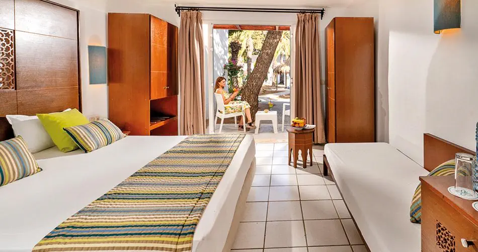 Bungalow: Klimatyzacja (15.06-15.09) Łazienka z wanna lub prysznicem, suszarka do włosów TV- Sat, telefon Sejf - bezpłatny Minilodówka - bezpłatna Sofa jako dostawka Łóżeczko dziecięce na zapytanie - bezpłatne Taras Pokój Standard Family: Wyposażenie jak w pokoju Bungalow 2 sofy jako dostawki Balkon lub taras Pokój Superior Family: Wyposażenie jak w pokoju Bungalow 2 sypialnie Balkon lub taras Maksymalne obłożenie: 3 dorosłych + 1 dziecko lub 4 dorosłych