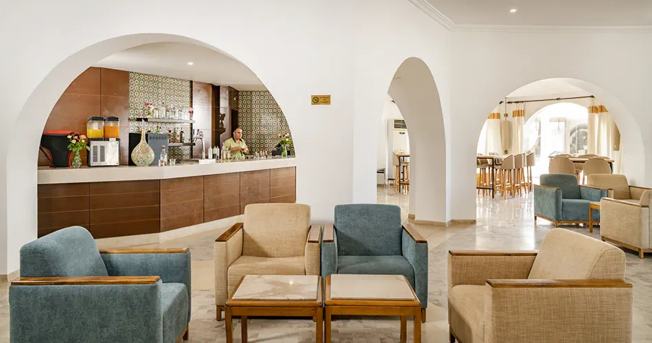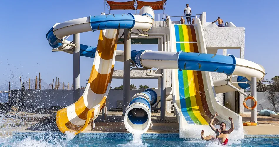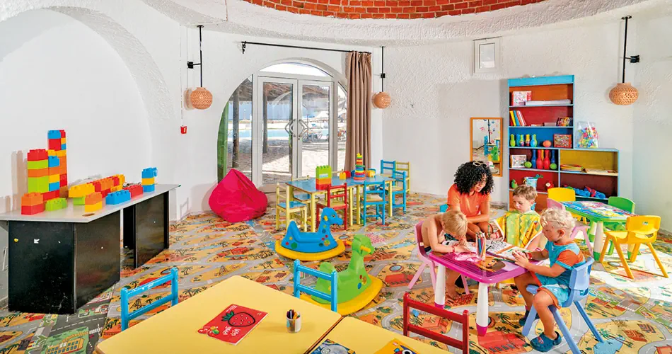 - Recepcja - 3 restauracje w tym 1 płatna (restauracja Tunezyjska a la carte "Cousscouserie") - 2 bary - Kawiarenka mauretańska (kawa turecka, szisha oraz Tunezyjskie słodycze są płatne) - Basen ze zjeżdżalniami czynny przez cały sezon (dostępny dla dzieci od 6 lat), dzieci do 6 lat mają małe zjeżdżalnie na poziomie brodzika. - 2 baseny zewnętrzne, brodzik - Amfiteatr - Centrum SPA - Sklepy - Fryzjer - Wyremontowany w 2023 - Oficjalna kategoria: VV* Holiday Village (Wioska wakacyjna)