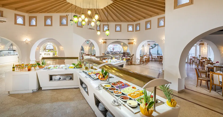 Ultra All Inclusive: - Śniadanie, obiad i kolacja w formie bufetu - Przekąski w określonych godzinach w ciągu dnia - Napoje bezalkoholowe i alkoholowe lokalnej produkcji serwowane w wybranych barach hotelowych w godzinach ich otwarcia od 10:00 do 24:00 - Jedna kolacja w restauracji à la carte (restauracja Tunezyjska, bezpłatnie raz na pobyt po dokonaniu wcześniejszej rezerwacji) - Między 23:00 -24:00 serwowane są wieczorne przekąski